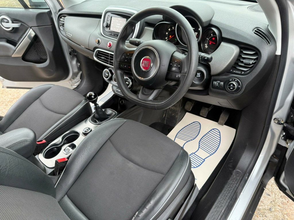 This 2015 Fiat 500X Cross Plus is a well maintained example with an MOT valid until August 2026 and a clear vehicle history check. This stylish crossover features a 1.6L Euro 6 diesel engine and is presented in the Cross Plus trim. Notable features include the Visibility Pack with automatic headlights, the Comfort Plus Pack, and the Nav Plus Pack which incorporates a 5 inch touchscreen with SatNav, Bluetooth connectivity, and DAB radio. It also boasts attractive 18 inch Trekking alloy wheels.This Fiat 500X Cross Plus offers excellent running costs, highlighted by an impressive fuel economy of 69 mpg, which is better than many similar vehicles. Its low CO2 emissions meaning only £20 Yearly Road Tax and low insurance group further contribute to its affordability, making it a sensible choice for many drivers. onnect radionav live 5in touchscreen with bluetooth audio streaming, radio with usb and aux, uconnect live, touchscreen - 5in, satellite navigation, steering wheel audio controls, climate control - automatic dual zone, daytime running lights, keyless entry and go with 2 remote key fobs, bi-xenon headlights, cruise control, speed limiter, 6-speed gearbox, chilled storage compartment on dashboard, electric windows - front and rear, tinted glass, electrically adjustable heated door mirrors, steering wheel - techno-leather trim, front centre armrest with storage compartment, hill holder, height adjustable drivers seat, 60-40 split folding rear seats, 12v socket, abs - anti-lock braking system, asr - anti-slip regulation, airbags - driver, airbags - front side, airbags - head side, airbags - passenger, ambient lighting, bas - brake assistance system, bluetooth audio streaming, body coloured bumpers, body coloured door mirrors, bumpers - all-road, cargo magic space - height-adjustable load platform, chrome exhaust tailpipe, dst - driving steering torque, dark tinted rear windows, dashboard fascia - matt grey finish, deadlocks, door handles - satin finish, door panel colour and centre console - brushed aluminium, drive mood selector, dualdrive power steering, ebd - electronic brakeforce distribution, erm - electronic rollover mitigation, esp - electronic stability programme, electronic parking brake, floor mats, front armrest, front fog lights with cornering function, headlights - cleaning system, msr - motor slip regulation, passengers airbag deactivation, pollen filter, rear spoiler - body coloured, roof rails - all-road, seats-back pockets, space saver spare wheel, speakers x4, traction control, tyre pressure monitor system, full service history (12 stamps in book), £20 yearly road tax, 5in touchscreen satnav with bluetooth and dab, rear parking sensors, bluetooth hands-free phone connectivity, voice control system, 18in alloy wheels - trekking - 5a6, ecoleather-fabric - black - grey, nav plus pack, privacy glass to rear windows, visibility pack, comfort plus pack