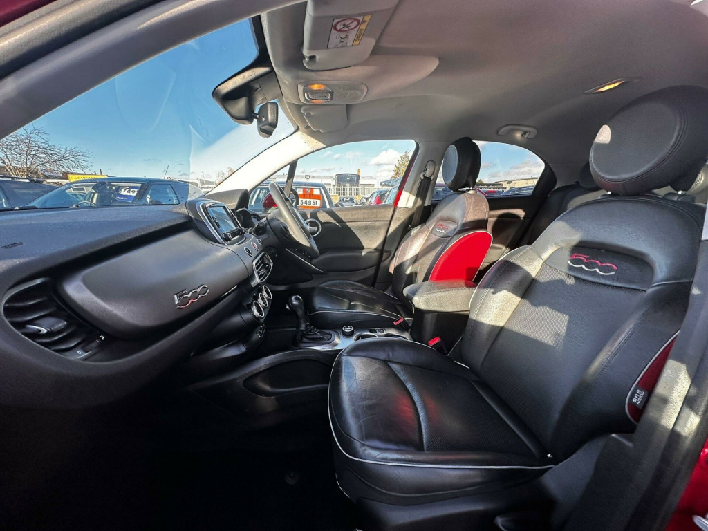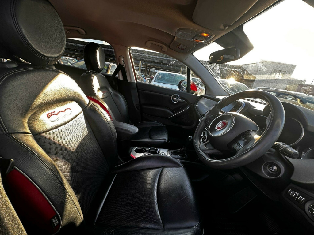 This 2015 Fiat 500X Cross Plus is a standout choice with exceptionally low mileage for its age, having covered just 60,000 miles. This four wheel drive, 2.0 litre diesel model meets Euro 6 emissions standards and boasts an MOT valid until June 2026, offering peace of mind for the road ahead. Its provenance is further supported by a partial service history. Inside, you'll find stylish black leather upholstery with red inserts, an electrochromatic rear view mirror for reduced glare, and electrically folding door mirrors for added convenience.The Cross Plus trim level enhances the driving experience with features like steering wheel mounted paddles for gear selection and an Autonomous Emergency Braking system for increased safety. This Fiat 500X also benefits from a low insurance group, making it an economical choice to own and run. These factors combined, including its impressive condition and thoughtful features, position this Fiat 500X as a superior option compared to other vehicles in its class. ather - black with red inserts, 12v socket, 18in alloy wheels - trekking - 4ay, 3.5in tft colour screen, 5in touchscreen radio with bluetooth and satellite navigation, 60-40 split folding rear seats, abs - anti-lock braking system, asr - anti-slip regulation, airbags - driver, airbags - front side, airbags - head side, airbags - passenger, ambient lighting, armrest - usb port, autonomous emergency braking - aeb, bas - brake assistance system, bi-xenon headlights, bluetooth, body coloured door mirrors, bumpers - all-road, cargo magic space - height-adjustable load platform, chrome exhaust tailpipe, climate control - automatic dual zone, cruise control, dab radio, dst - driving steering torque, dark tinted rear windows, dashboard - all-road, daytime running lights, deadlocks, door handles - satin finish, door mirrors - electrically folding, drive mood selector, dualdrive power steering, ebd - electronic brakeforce distribution, erm - electronic rollover mitigation, esp - electronic stability programme, electric windows - front and rear, electrochromatic rear view mirror, electronic parking brake, fix and go puncture repair kit, floor mats, front fog lights with cornering function, headlights - cleaning system, heater - ptc for diesel, height adjustable drivers seat, hill holder, keyless entry and go, leather gear knob, msr - motor slip regulation, nav plus pack, passengers airbag deactivation, pollen filter, rain sensor, rear parking sensors, rear spoiler - body coloured, roof rails - all-road, sd-card, seats-back pockets, space saver spare wheel, steering wheel - paddles, steering wheel audio controls, touchscreen -6.5in- dab radio with bluetooth and satellite navigation, traction control, tyre pressure monitor system, visibility pack