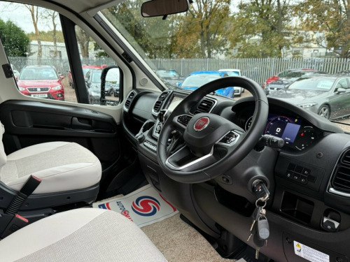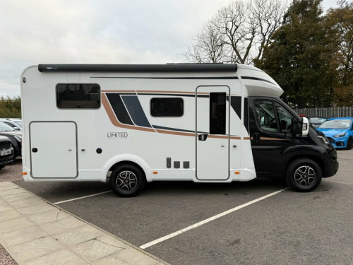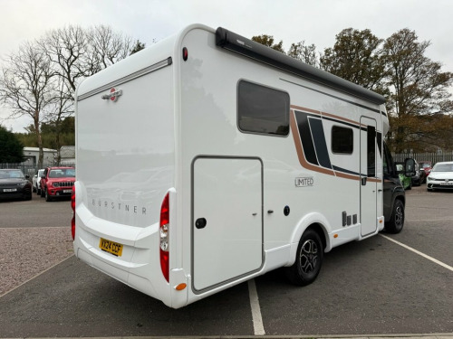 FIAT BURSTNER limited T690G 2.2 140 bhp automatic 2 berth ( END BEDROOM WITH TWO BEDS THAT CAN MAKE LARGE DOUBLE, FRONT L-SHAPED LOUNGE/DINETTE, ADJACENT CENTRAL WASHROOM WITH SHOWER AND TOILET, 4 BELTED SEATS, LARGE END TRANSVERSE GARAGE, CENTRAL KITCHEN, ) ( * STAND OUT FEATURES AS FOLLOWS : Lecce melange upholstery, Riva loft furniture, Black cab metallic paint, L-shaped dinette seating, Manual roll out awning 4M anthracite, 100W roof solar panel, Exterior gas point, Dual side garage doors, ) Motorhome comes in a Fiat upgrade black metallic cab paint with white body and Burstner limited T690G body decals, Upgrade 16 inch diamond cut and gloss black alloy wheels, Burstner limited T690G body kit, Burstner limited T690G exterior features, Side door light, Reversing camera, Upgrade external TV aerial points, Large front window, LED daytime lights, Electric windows, Electric adjustable wing mirrors, 9 speed fully automatic gearbox, Central locking, Traction +, Hill descent, Driver selector modes, LED trip computer speedometer display, 3 spoke leather steering wheel, Speed limiter, Cruise control, Climate control, Air conditioning, Upgrade Pioneer touch screen media unit, Smartphone compatible satellite navigation, Bluetooth, DAB radio, Aux/usb port, Various APPS, Eye catching half white leather and grey cloth Burstner limited T690G front swivel captain chairs, Burstner limited T690G half white leather and grey cloth interior seats through out, Front L-shaped lounge / dinette,