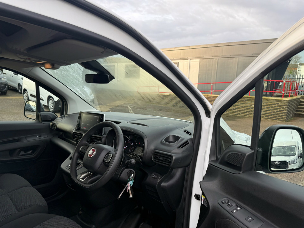 Introducing the 2024 Fiat Doblo 1.5 BlueHDi 1000Kg Panel Van, a reliable and efficient commercial vehicle suitable for all your business needs. With only 38886 miles on the clock, this Diesel-powered van is ULEZ compliant, making it an environmentally friendly choice for urban driving. The Single Cab design provides 2 seats and 5 doors, allowing for easy accessibility and convenience. The van boasts a Gross weight of 2385kg, ensuring ample capacity for your cargo. Equipped with 16in Steel Wheels and Centre Hub Cap, this panel van is ready to tackle any road. Inside, you'll find modern features such as Connected Services, Multimedia with 8in Touchscreen, and a Telematics Box Module with E-Call for added safety. Plus, the 12v Front Plug on Dashboard offers practicality for all your electronic needs. Don't miss out on this fantastic commercial vehicle that's ready to elevate your business to the next level. v front plug on dashboard, connected services, multimedia with 8in touchscreen, telematics box module with e-call, 16in steel wheels and centre hub cap, black bumpers, door handles - black, door mirrors - manually adjustable, electric driver window, side protection - black, tyre re-inflate kit, 4-way driver seat - reach-rake, air conditioning - manual, audio controls - steering wheel buttons, bulkhead - full with clothes hook, cabin floor protection - hard plastic, nearside sliding side door, overhead storage shelf, passenger seat - single folding, rain and dusk sensors, rear doors - asymmetrical solid panel rear doors - 180 degree opening, six fixed floor-mounted load restraint lashing eyes, steering column adjustable with rake and reach, steering wheel - 3-spoke sports, white text lcd instrument panel, abs - anti-lock braking system, airbags - driver, dashboard mounted central locking push button and auto locking above 7mph, ebd - electronic brakeforce distribution, esc - electronic stability control, emergency brake assist, hazard light automatic activation during emergency braking, hill holder system, manual parking brake, remote control central deadlocking with immobiliser, two remote keys, cruise control with speed limiter, power steering, tyre pressure monitor system, daytime running lights