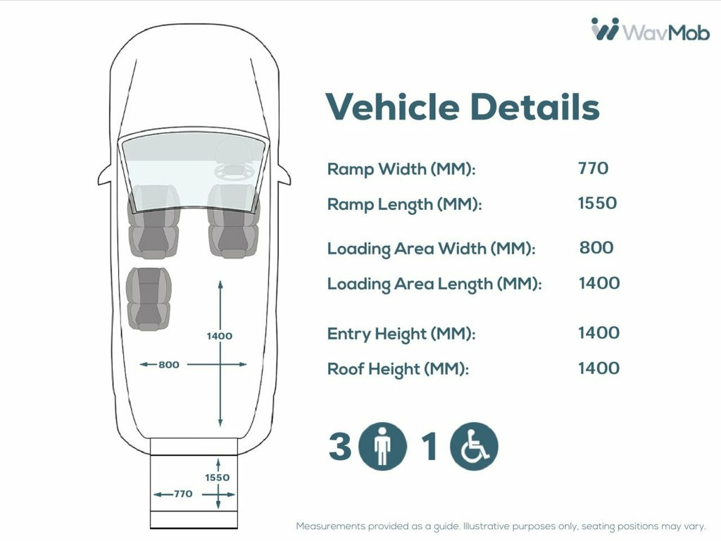 This Lateral Designs converted Fiat Doblo Wheelchair Accessible Vehicle (WAV) has 3 Seats (2 Front and 1 Rear). Equipment includes Wheelchair Ramp, Electric Winch, Air Conditioning, Electric Front Windows, Electric Adjustable Wing Mirrors, Power Steering, Remote Central Locking, Tinted Rear Windows. Manual Air Conditioning, Minimal Grey