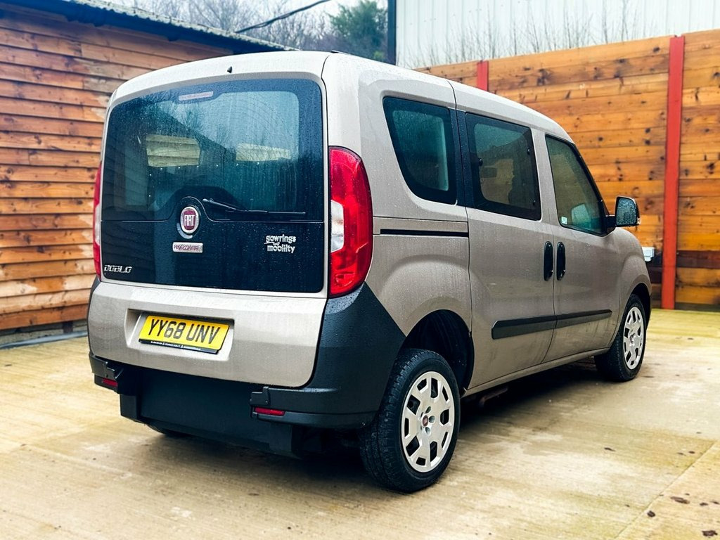 This Gowrings Mobility converted Fiat Doblo Wheelchair Accessible Vehicle (WAV) has 3 Seats (2 Front and 1 Rear). Equipment includes Wheelchair Ramp, Air Conditioning, Electric Front Windows, Electric Adjustable Wing Mirrors, Power Steering, Remote Central Locking, Tinted Rear Windows.