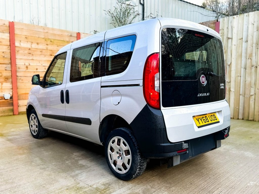 This Gowrings Mobility converted Fiat Doblo Wheelchair Accessible Vehicle (WAV) has 3 Seats (2 Front and 1 Rear). Equipment includes Wheelchair Ramp, Electric Winch, Air Conditioning, Electric Front Windows, Electric Adjustable Wing Mirrors, Power Steering, Remote Central Locking, Tinted Rear Windows. Manual Air Conditioning, Minimal Grey