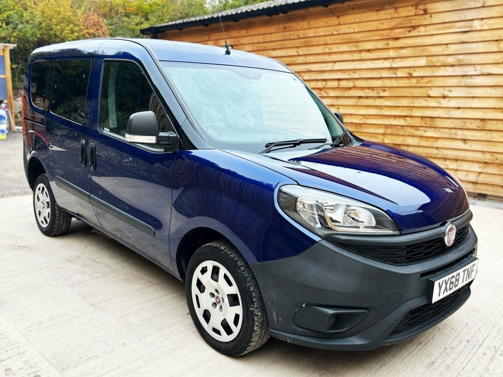 This Gowrings Mobility converted Fiat Doblo Wheelchair Accessible Vehicle (WAV) has 4 Seats (2 Front and 2 Rear). Equipment includes Wheelchair Ramp, Air Conditioning, Electric Front Windows, Electric Adjustable Wing Mirrors, Power Steering, Remote Central Locking, Tinted Rear Windows. Cool Jazz Blue, Manual Air Conditioning