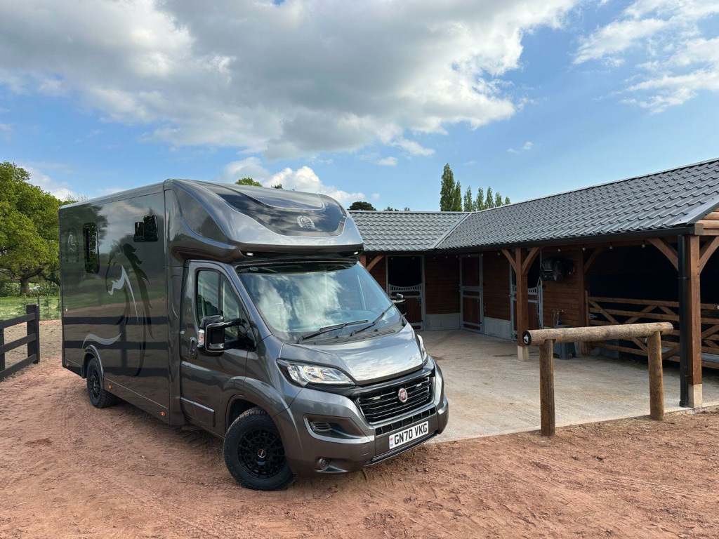 New Build Equus 3.5T coach built Horsebox. Built on 2021 Automatic 140BHP Ducato Built on special factory order coachbuilder chassis. Galvanized low floor Alko chassis with Towbar gives you the Low floor extended roof allowing an extra 12 of internal box height over standard horseboxes, ✅Reinforced Bulkhead and horse safety cell . ✅Euro 6 model, ✅Roof Vent, ✅Commercial Alloys with Allterrain Tyres, ✅Light Weight Reinforced Loading Ramp with internal gas assist struts, ✅ One Piece external doors all round, ✅Stallion Pro Removable partion, ✅led Lighting Throughout , ✅Groom Area with wardrobe , ✅internal horse camera and reverse camera, ✅Composite Floor with Equimat and drainage, ✅Bonded limo style opening Tinted windows, ✅Large Saddle Rack Locker, ✅ 1050Kg Payload can be uprated to 1450kg, Located in Cheshire 5 Mins From Mcr Airport 12 Months Warranty on Build and 6 months Mechanical. RTB