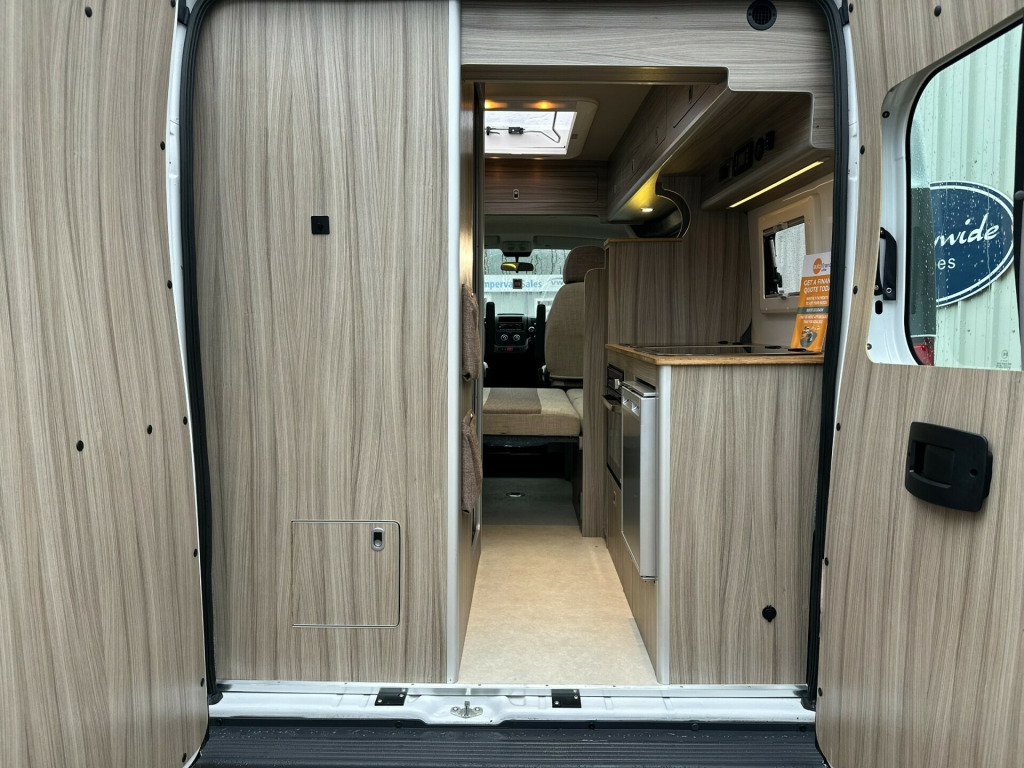 Built on the short wheel sub 5m base Fiat high top, this compact but well designed 2 berth 2 seat belt, van conversion ticks all the boxes!Some of the features included are - •Cab Air-Conditioning •6 Speed Manual Gearbox•Transverse Bed Layout (when made up)•Swivel Captain Cab Seats•Heki Rooflight•Electric Habitation step •TV Aerial and fitted TV •Cassette Loo •240 Mains & USB Sockets •Gas Fuelled Heating & Hot Water System•Fresh & Waste Water Tanks •Dometic Fridge/Freezer•Modern LED Lighting•Solar panel •On Board LPG gas tank Don't miss out call now 01202 855531 Option 1 for Sales and speak with a member of our award winning team !!!!!!!! '' We have attempted to make the above description as accurate as possible but please bear in mind that honest mistakes can happen so this description cannot form any part of any future contract. Some items fitted to models on display may be excluded from said contract' 0 bhp engine, 12 volt fridge, 2 berth, 6 speed manual, awning rail, barn doors, battery charger, cab aircon, cassette toilet, electric step, euro 6, gas grill/oven, gas hob, heating, heki roof light, high top, hot water, low mileage, plgv (under 3.5t), sink, solar panel, sub 5.0 meter van, swivel cab seats, tv aerial & sockets, ulez compatible, underslung gas tank, waste tank, 2 seat belts