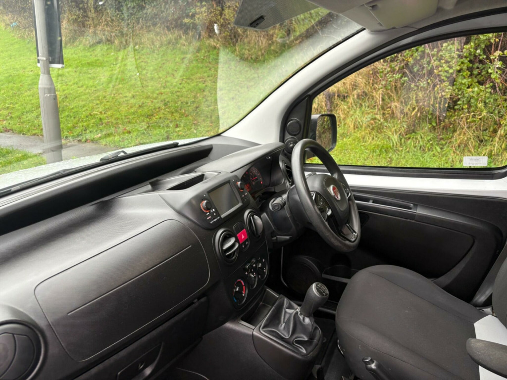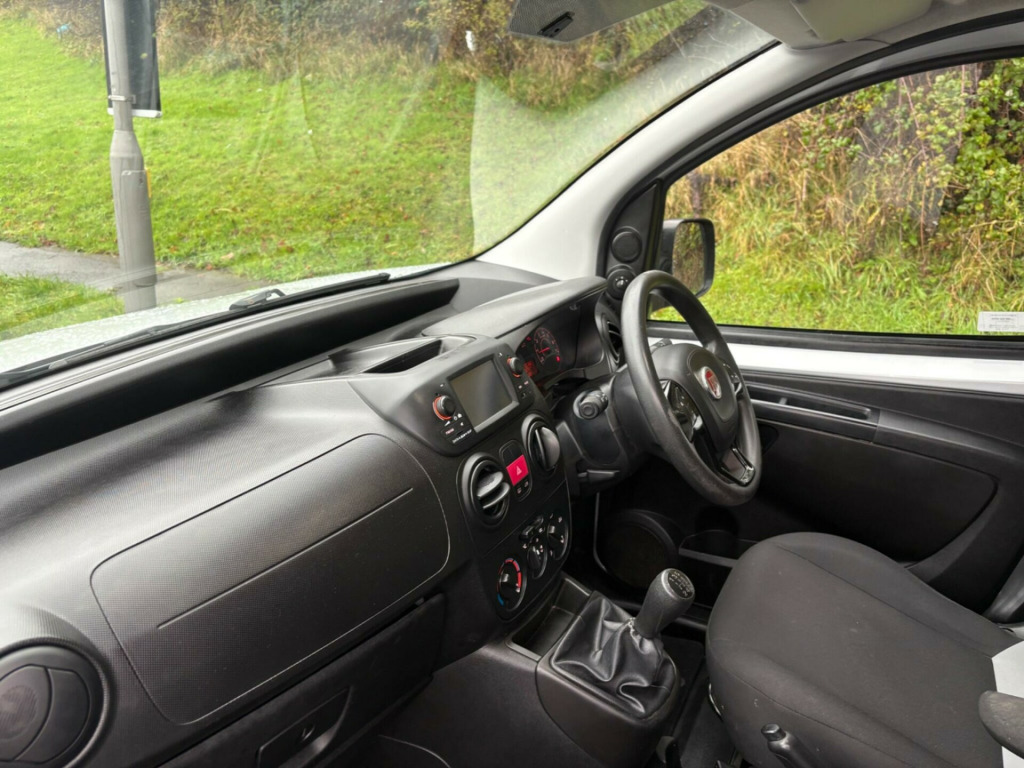 This 2019 Fiat Fiorino SX offers a superb blend of efficiency and practicality, making it an excellent choice for your business needs. Powered by a reliable 1.3 litre MultiJetII diesel engine, this Euro 6 compliant model is designed for economical running. The SX trim level ensures you have a comfortable and connected driving experience, featuring a 5 inch touchscreen radio with Bluetooth connectivity for seamless handsfree calls and music streaming.With an impressive cargo volume of 2500 litres, this Fiorino provides ample space for your goods, highlighting its superior capacity compared to many other vehicles in its class. This generous load area, combined with the fuel efficient diesel engine and the user friendly infotainment system, makes the Fiat Fiorino SX a smart and capable companion for any task.NO VAT FREE DELIVERY WITHIN 40 MILES PX WELCOME in wheel trim, usb charge port, rear parking sensors, airbags - front side, airbags - passenger, alarm, mud flaps, tyres - winter, air conditioning, cloth - black with grey detail, offside sliding side door, 12v front plug in socket, 15in steel wheels, 5in touchscreen radio with bluetooth, abs - anti-lock braking system, airbags - driver, athermic windows, bulkhead - ladder, cabin area floor pvc lining, control for opening rear door from driver compartment, deadlocks, door mirrors - electric, drivers seat armrest, drivers seat lumbar adjustment, eco pack, esc - electronic stability control, electric front windows, fix and go puncture repair kit, front bumper and grille with painted ultrashine silver, glove compartment, headlights - adjustable, height adjustable drivers seat, larger payload, locking fuel cap, nearside sliding side door, power steering, radio controls on steering wheel, remote control central door locking, speed limiter, steering wheel - height adjustment, twin panelled rear doors