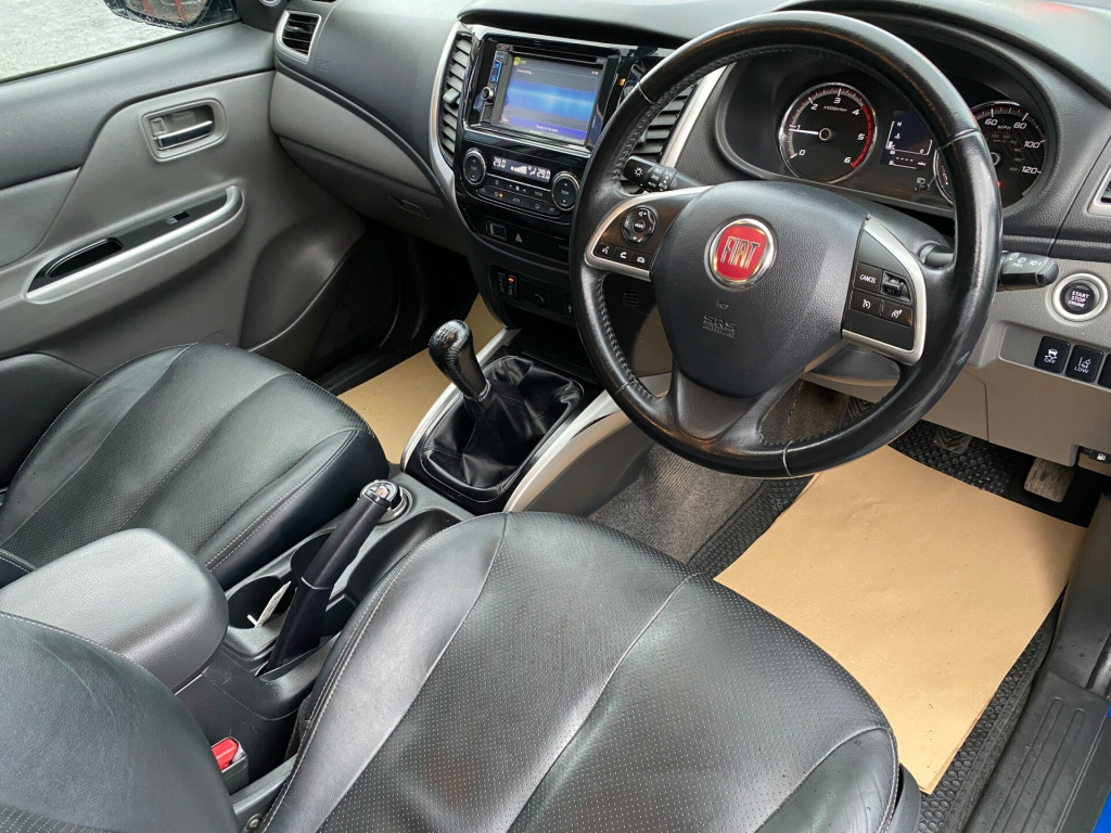 This 2017 Fiat Fullback 2.4D LX Pickup Double Cab 4dr Diesel Manual 4WD Euro 6 (Euro 6) (180 ps) is a reliable and stylish vehicle with only 76427 miles on the clock. With 5 seats and 4 doors, this Pickup is perfect for both work and leisure. The Diesel engine is both powerful and efficient, and with a new MOT on sale, you can drive with confidence. Additionally, this vehicle is ULEZ compliant, making it suitable for city driving. The exterior features 17in Alloy Wheels, Body Coloured Front Bumpers, and Chrome Accents, while the interior boasts luxurious Black Leather upholstery and a Heated Rear Window for added comfort. Whether you're hitting the road for a weekend adventure or heading to a job site, this Fiat Fullback is ready to tackle any task with ease. - AWAITING PREPARATION - 2 keys - NO VAT- ULEZ compliant- Great Specification, including roller shutter and side steps- Good Service History- Extended Warranties Available- Finance Available- Part Exchange Welcome, in alloy wheels, body coloured front bumpers, chrome accents exterior, heated rear window, mud guards front, overfenders - body colour, power window front and rear, privacy glass, rear bumper with small step, side step, 6.1in touchscreen with sat nav-dab radio-cd-mp3 with bluetooth - music and handsfree, usb port, abs with ebd, active stability control, airbags - curtain - side front and rear seat, airbags - driver - passenger and knee, alarm, bas - brake assistance system, central locking, hill start assist, isofix child seat mountings 2nd row x2, immobiliser, keyless entry, rear fog light, seat belt warning lamp with audio alert, trailer stability assist, air filter, chrome accents interior, dual zone climate control, front and rear armrest with storage-cup holders, fullback lx pack 2, head restraints - rear, heated driver and passenger seat, keyless operation system - keyless go, leather steering wheel and gear knob, rear brake light, rear seats air duct, seats - 8 way drivers electric adjustment, steering wheel audio controls, bi-xenon headlights, front fog lights, headlamp levelling device, headlamp washers, rain and dusk sensors, cruise control with variable speed limiter, electronic 4wd selector - 4 steps, lane departure warning, power steering, rear view camera