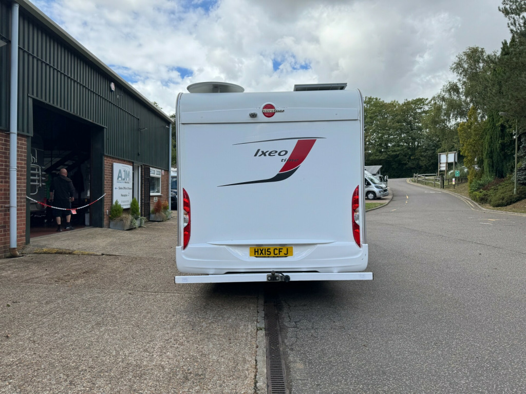 We are delighted to offer this stunning 2015 Burstner Ixeo Time 726 Sovereign with the popular Automatic gearbox. Very popular layout with the spacious layout with separate swing wall shower washroom. This being a 4 berth motorhome has above the added advantage of the electric drop down large double bed when required. This motorhome also comes with 4 dedicated travels seats and belts. Full leather throughout, Truma heating throughout.This is an incredibly well spec example of 1st class luxury from the German manufacture Burstner and has many extras installed such as, Solar panel, Tow bar, Dometic reverse camera system, satellite system to name just a few. Please read the specification of information listed in the the technical tab and viewing is highly recommended here at the dealership...Disclaimer: Whilst every effort is made to ensure the accuracy of the data shown, it is not a definitive statement of specification of the vehicle and no responsibility will be accepted for errors in listing made on this site. r conditioning, bluetooth connection, colour satnav, full leather, manufacturer direct, cassette toilet, double bed, fixed bed, hand basin, shower, wardrobe, 3-burner hob, 3-way fridge, fridge freezer, grill, oven, side kitchen, 3 point seatbelts, central locking, power steering, cruise control, parking camera, spare wheel, steering wheel reach adjustment, traction control, trip computer, abs, service indicator, twin air bags, alarm, immobiliser, remote central locking, electric mirrors, heated door mirrors, 3rd party sound system, bluetooth enabled stereo, cd player, television, tv aerial, front armrest, height adjustable drivers seat, body coloured bumpers, colour coded body, led 3rd brake light, led daytime running lights, towbar - fixed, 12v points, 15, ample storage offered, automatic, automatic satellite, battery master system, double glazed side windows, electric drop down double bed, fresh water onboard tank, fully winterised, heated rear garage, internal blinds, internal fitted curtains, large rear garage, led lighting throughout, leisure battery, mains 240v sockets, mirror guards, omnistor thule awning, overhead led lighting, roof mounted solar panel, separate shower cubicle, space for 2x 13kg gas bottles, swivel captains chairs, tow bar, truma dual fuel heating system, truma electric/gas water heater, weight 4250kg, wrap around cab blinds, 15'' Alloys