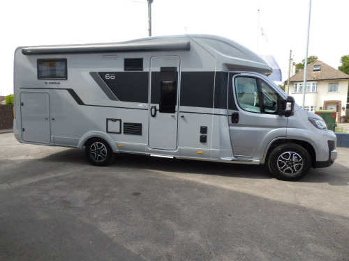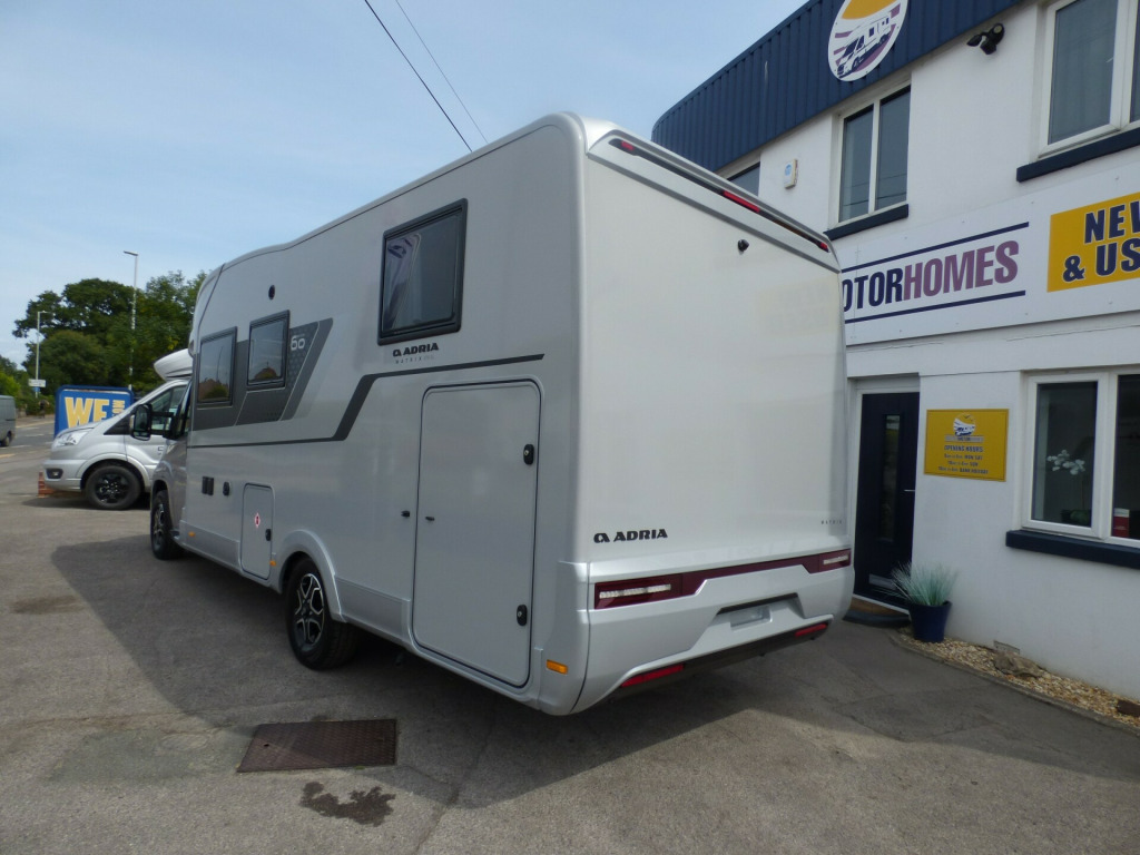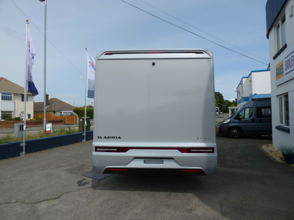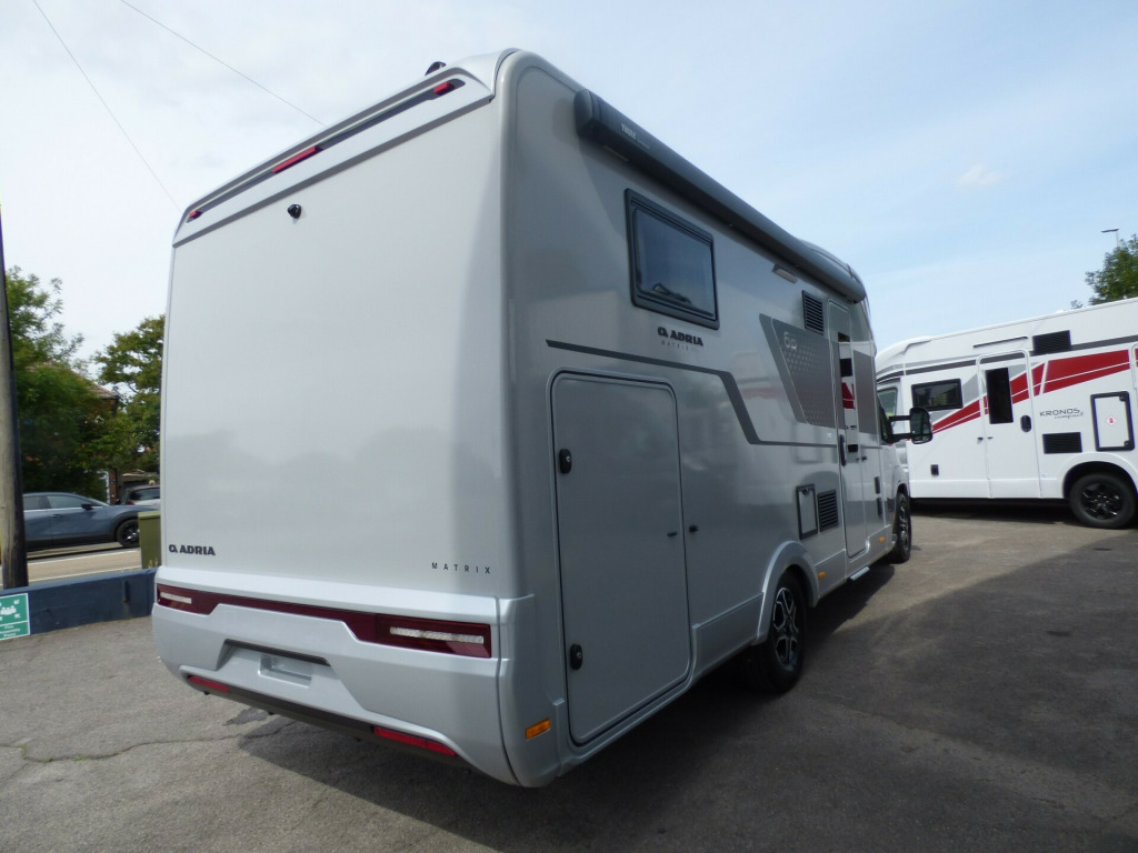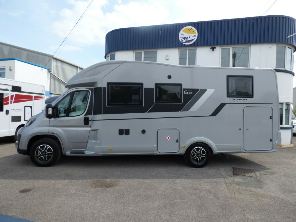 Special Offer! Free Prestige Pack worth £1655 - includes Scorpion Defender S5+ Alarm & Tracker system, 22'' Falcon TV, Soundbar and WiFi!New 2025 model Matrix Supreme 670 SL 60th Anniversary Edition in stock now. This stunning Matrix from Adria is based on the Fiat chassis with 140bhp engine and 8 speed automatic transmission and offers luxurious accommodation for up to four. The front seats swivel to face a generous dinette featuring an electric elevating double bed over. The well equipped central kitchen has a 3 burner gas hob, gas oven and grill plus a large fridge/freezer. The bathroom has a separate shower cubicle and a cassette type toilet with wash basin and cupboard space. The rear bedroom has two large single beds that can be joined together with in-fill pads to create a huge double bed. The steps up to the bed create plenty of storage and one of the stand-out features of the SL model is the large garage. Heating is by a Truma system and other features of this Adria Matrix 670SL 60y Edition include: Thule wind out awning, Carpets and . 4 Berth, 3 Seatbelts, L. 7.69m, W. 2.29m, H. 2.9m, 3,500kg (4 belts at 3,650kg), Delivery Miles loy wheels, automatic transmission, carpets, iso fix child seat fixings, pleated cab blinds, rear garage, reversing camera, separate shower cubicle, thule awning, free prestige pack worth £1655!, 16'' Alloys