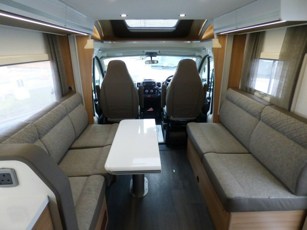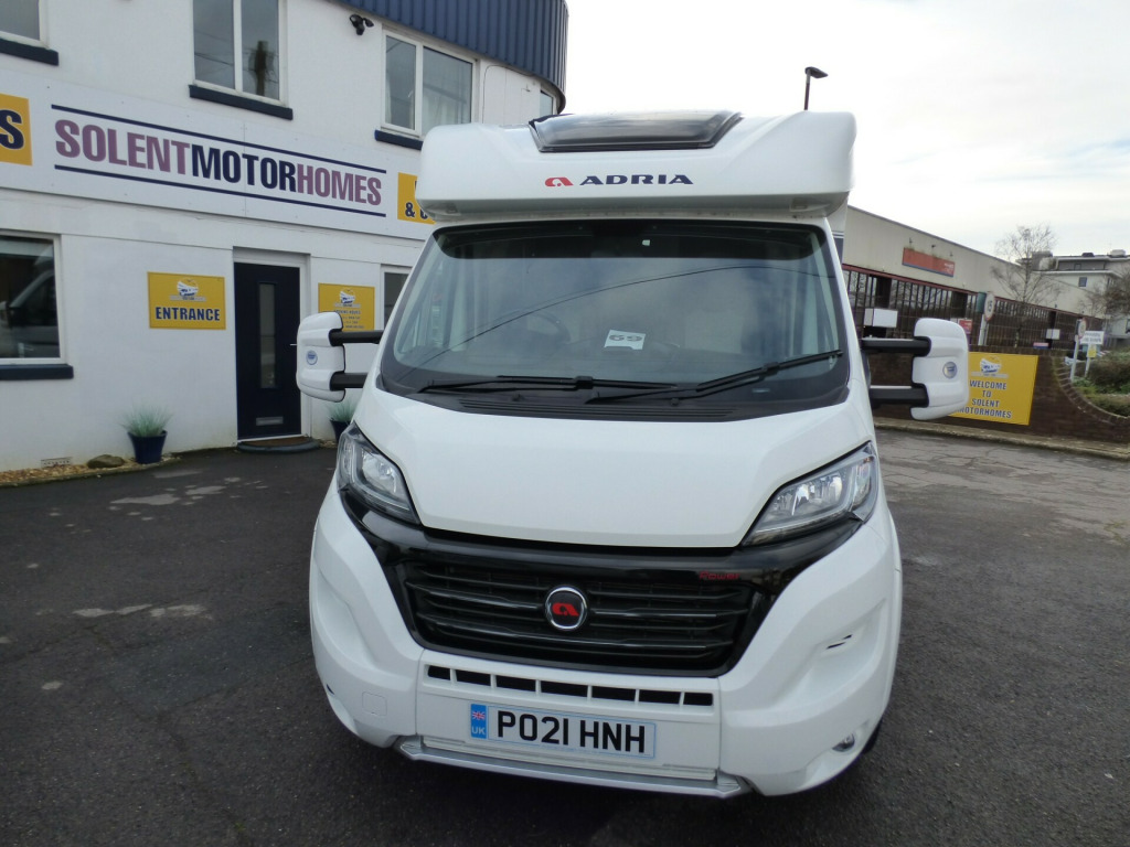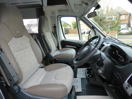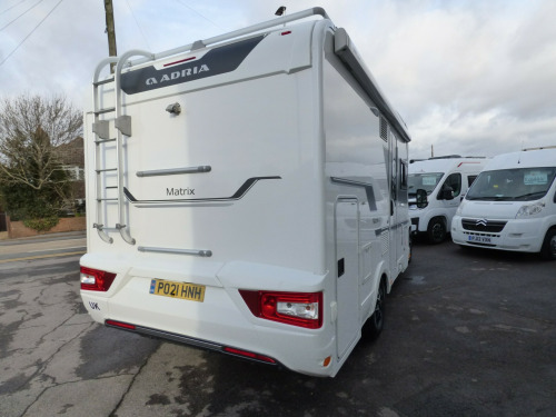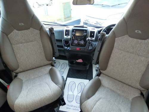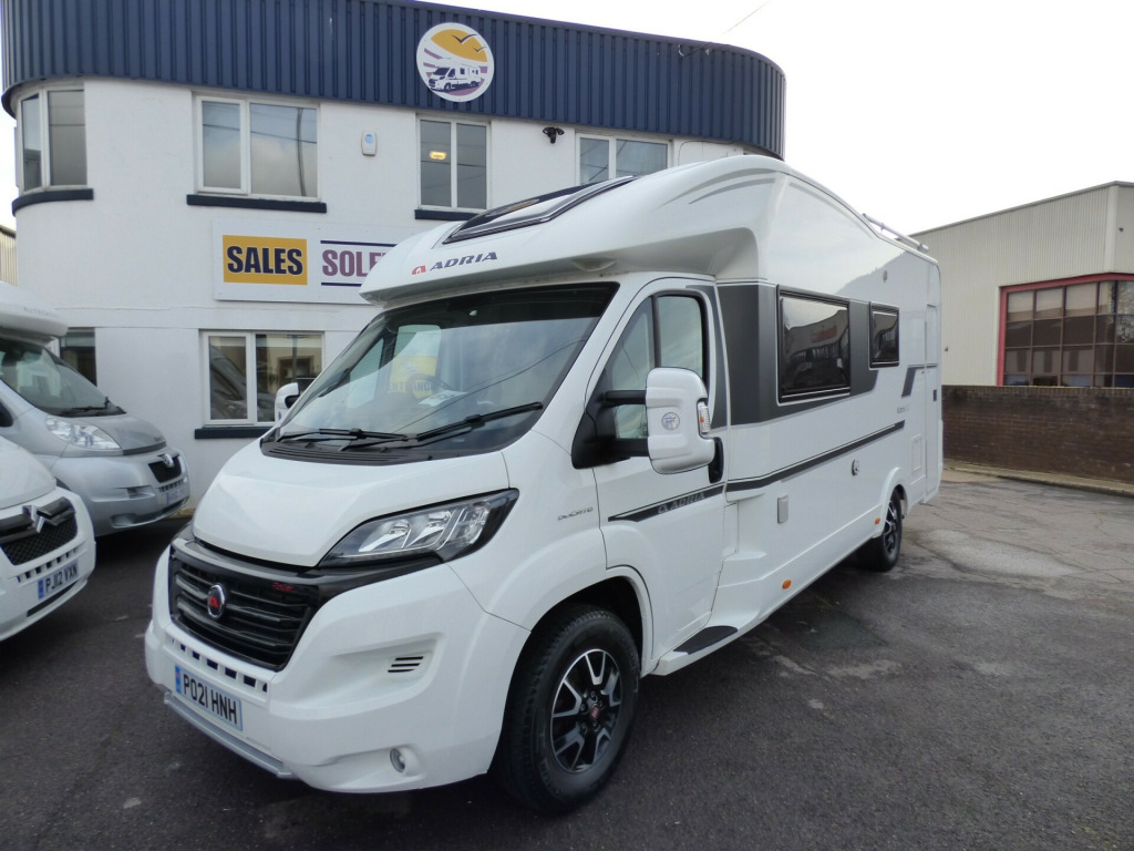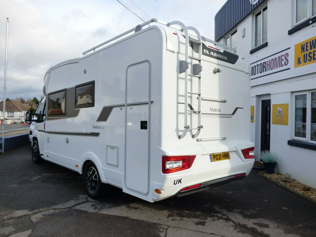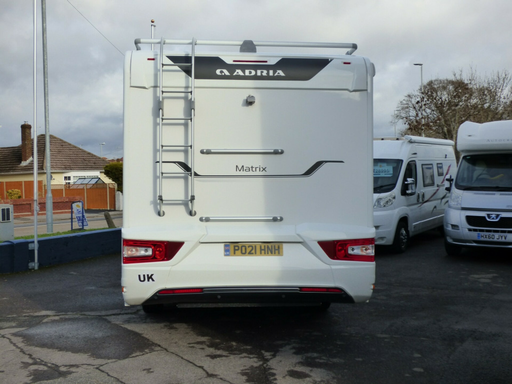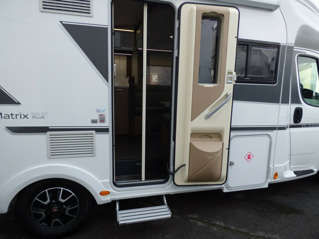 This stunning Adria Matrix 600DT has been very well looked after and offers luxurious travel for couples and families alike. Based on the Fiat Ducato chassis with upgraded 160bhp engine and 9 speed automatic transmission, this motorhome features a well thought-out layout and a high standard and optional specification. The lounge area has opposing sofas that convert to a double bed for night time use with front swivel seats and an electric elevating double bed over. The well equipped kitchen has a Thetford gas oven and grill with Dometic 3 burner gas hob and extractor over and a tall 3 way Thetford fridge/freezer along with ample cupboard and drawer space. The large rear bathroom has a separate shower cubicle, cassette type toilet and wash hand basin with plenty of cupboard space and access to the very large wardrobe. Externally there is a rear garage and heating and hot water is taken care of by a dual fuel Truma system. Other features for this Adria Matrix 600DT include: Thule awning, roof rails and ladder, external BBQ point, rear parking sensors, reversing camera, electric step, TV Bracket, Maxview antenna, solar panel and carpets. L. 6.99m, W. 2.29m, H, 2.90m, 3,500 kg, 4 berth, 4 seatbelts, 16,560 miles. loy wheels, automatic transmission, cab a/c, carpets, electric step, external gas bbq point, mirror protectors, pleated cab blinds, rear garage, rear parking sensors, reversing camera, separate shower cubicle, solar panel, thule awning, tv antenna, tv bracket, 160bhp engine, 16'' Alloys