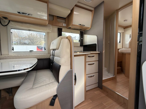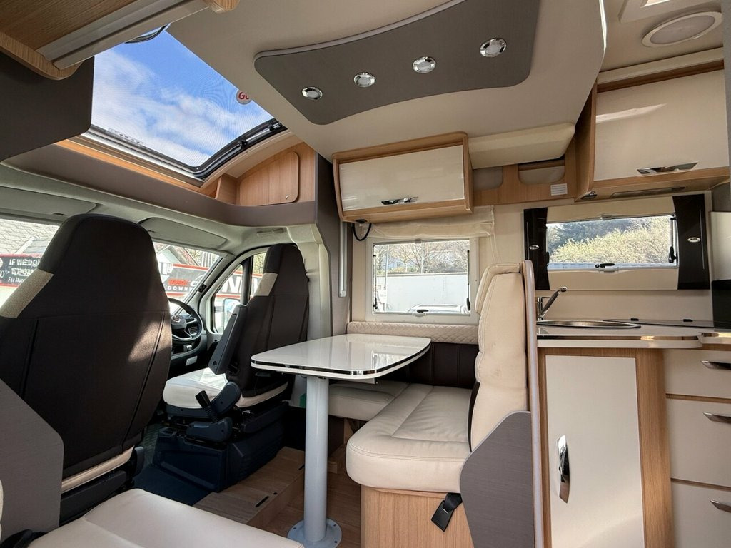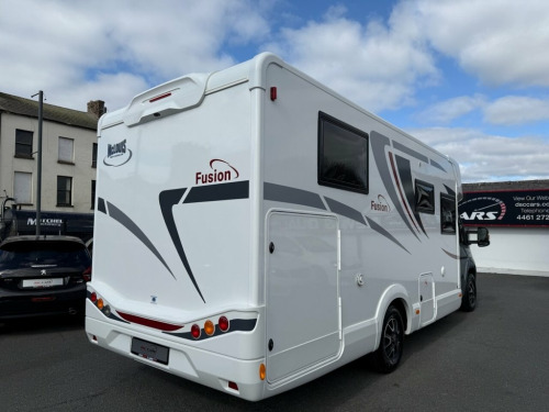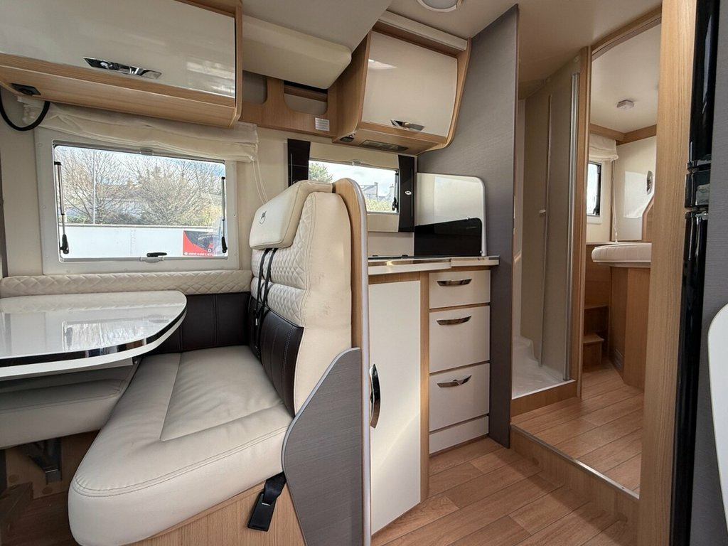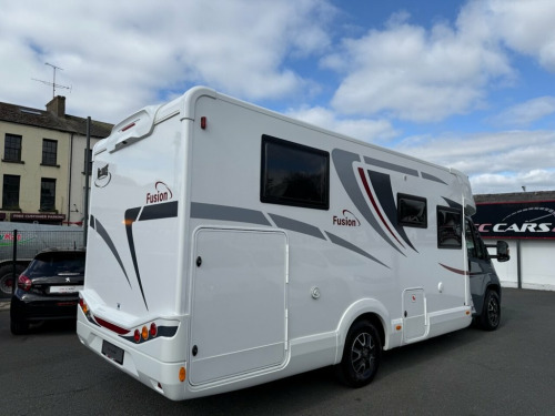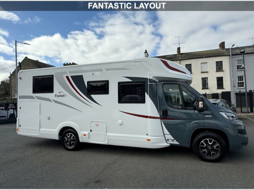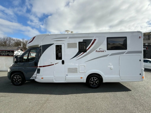 This Mc LOUIS FUSION 379 is a modern practical 4 berth USED Motorhome, which has 5 x seat-belted seats for safe travel. With an Island Bed at the back over a large garage beneath, and a comfortable lounge / dinette at the front behind the cab, with kitchen, WC and separate shower cubicle too, the boys and girls at McLOUIS would appear to have done an excellent job here. The base vehicle, a motorhomers favourite is the Fiat Ducato with powerful 2.3 engine and 140 BHP, six speed manual gearbox, cruise control, twin airbags, cab air-conditioning and traction control too. The Bluetooth radio has media inputs, and built-in Satellite Navigation and also features steering wheel controls. The Truma Combi-Boiler is dual fuel (Gas and / or electrically powered) and will provide you with warm air throughout the motorhome to keep you comfortable, and of course will provide your hot water too. For the TECH Savvy among us the Trauma system is iNET ready and so can be upgraded (at an extra cost) to a remote-control system through an app ! The specification of our McLouis Fusion 379 is impressive, with roof mounted 120 Watt Solar Panel, Samsung TV, Status TV Aerial with 12 x volt signal booster, Reversing Camera, Compact-Ultra Motorhome Wi-Fi, Heated waste water tank , Thule Awning, and Insurance approved security systems including an Autowatch alarm system and S7 GPS Tracker too, (Subscription Payable). It is possible to have a working TV in the bedroom. both the wall fixing and necessa
