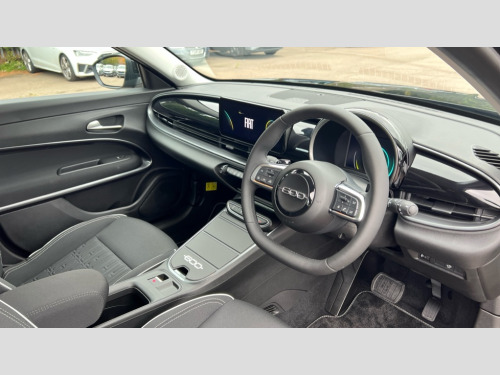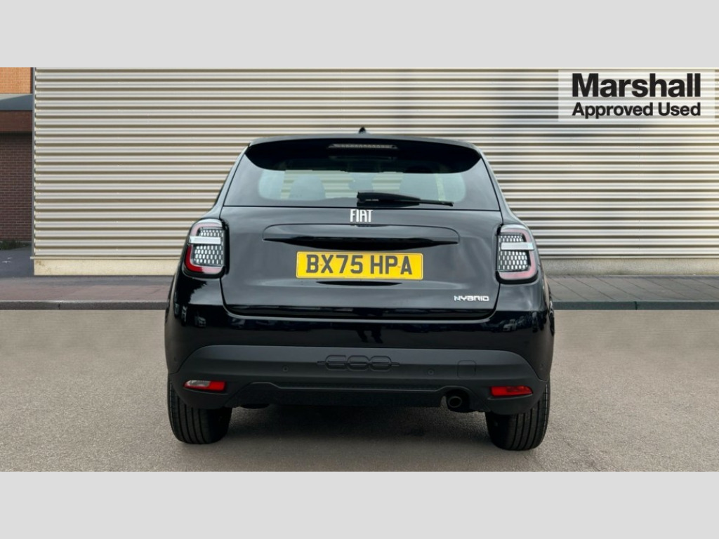Fiat 600 1.2 Hybrid 48V 5dr eDCT-6 7" TFT digital cluster, Bluetooth connectivity, BSRF connectivity box, Connected services, Cruise control, Drowsy driver detection, Emergency E-call assist, Engine emission level default, GSR II step 1, Intelligent speed assist, Lane keeping assistant (LKA), Odometer, Power assist steering, Rain and dusk sensors, Rear parking sensors, Traffic sign recognition, Wireless apple car play/android Auto, Without drive mode selector, L2-AGM 12V battery, 1st Row USB type-A and USB type-C, 4 speaker audio system, Radio, Uconnect infotainment 10.25" touchscreen with DAB, All power windows express Up/Down, Auto dimming frameless rear view mirror, Automatic headlights, Body coloured door handles, Chrome day light openings, Electric adjustable door mirrors, Exterior chrome accents, Front and rear Chromed 600 logo, Gloss black finish B pillar, Gloss black shark fin antenna, Glossy black door mirrors, Heated windscreen wiper blade area, LED 3rd brake light, LED daytime running lights, LED Fog lamps with cornering function, LED front signature lighting, LED front turn indicators and position lights, LED rear lights, LED rear signature lighting, LED reflector headlamps, Matt black side skirts with 600 chromed logo, Rear bumper embossed 600 logo, Rear roof spoiler, Rear side wing doors, Rear wiper, 2 Spoke synthetic leather steering wheel with audio control, 3 rear headrests, 3 seat bench in 2nd row, 4 way manually adjustable passenger seat, 6 way manually adjustable drivers seat, Auxilliary 12V power socket, Body colour dashboard fascia, Chrome interior door handles, Dark metachrome dashboard ring, English handbook, Front centre armrest, Front headrests, Front passenger grab handle, Front seatback pockets, ISOFIX attachment on front passenger and rear passenger seats, Manual climate control, Metachrome central compartment bezel, Monogram fabric upholstery, Paddle shifts, Partial body cover for shipment, Predisposal for accessory upgrade to default tunnel pad cover (dedicated prnd bezel), Rear seat 40/60 split, Single front passenger seat, Smart 15L storage central tunnel with tunnel pad cover, Sunvisor label ciao Fiat, Sunvisors with vanity mirrors, 3x3 point rear seatbelts, 6 airbags, ABS, Autonomous Emergency Brake (AEB) & Vulnerable Road User (VRU) Protection, Child locks on rear doors, Electronic parking brake with auto hold, ESC (Electronic Stability Control), Front passenger airbag deactivation, Seatbelt reminder and pretensioners for all seats, Anti-theft volumetric alarm, Anti-theft wheel bolts, Keyless Go, 17" Diamond cut alloy wheels, Fix and go puncture repair kit