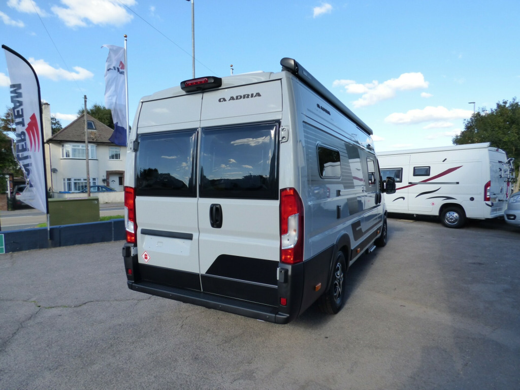 The stunning new 2026 model Adria Twin Supreme 640 SLB is in stock at Solent now. One of the most sought after van conversions on the market, the Twin Supreme is a superbly designed and built motorhome at home off the beaten track or travelling on adventures in foreign lands. The thoughtful design means there is a lot of storage space and every inch of the 6.36m is used well. The Twin is Fiat Ducato based featuring the new 2.2l 140bhp engine and 8 speed automatic transmission. Also fitted with the optional Lux pack, it boasts LED headlamps and a full LCD driving display. Behind the swivel seats is a dinette that seats 4 in comfort. To the side, the kitchen is fitted with a gas oven/grill, a 2 burner gas hob and a fridge/freezer. Opposite, behind a tambour door is the bathroom with cassette type toilet, wash hand basin and a clever partition for the shower. The bedroom is arranged so that it can be used as two single beds or a large double which can be moved out of the way to provide a huge storage area, ideal for transporting bikes. Heating is provided by a diesel heater with hot water by a Truma Combi unit. Finished in Expedition Grey with the Black Leather Edward interior. Other features for this Adria Twin Supreme 640 SLB include: Truma Habitation Air Conditioning, Twin Leisure Batteries, Pleated Cab Blinds, Navigation, Carpets, Thule Omnistor wind out awning, Adaptive cruise control, Solar Panel, Flyscreen for sliding door, closing assistance for sliding door and Fiat Lux Pack. L. 6.36m, W. 2.05m, H. 2.60m, 3,500kg. 2 Berth, 4 Seatbelts, Delivery Mileage. Free Solent Pack worth £1655 comprises: Scorpion S5 Alarm and Tracker, Falcon 22'' Smart TV, Falcon Soundbar and Falcon 4G motorhome WiFi. aptive cruise control, air bed with pump, alloy wheels, automatic transmission, carpets, electric step, fiat lux pack, flyscreen for sliding door, habitation air conditioning, leather upholstery, solar panel, thule awning, twin leisure battery option, free prestige pack worth £1655!, outdoor table holder, sliding door closing assistance, fiat pack safety, 16'' Alloys