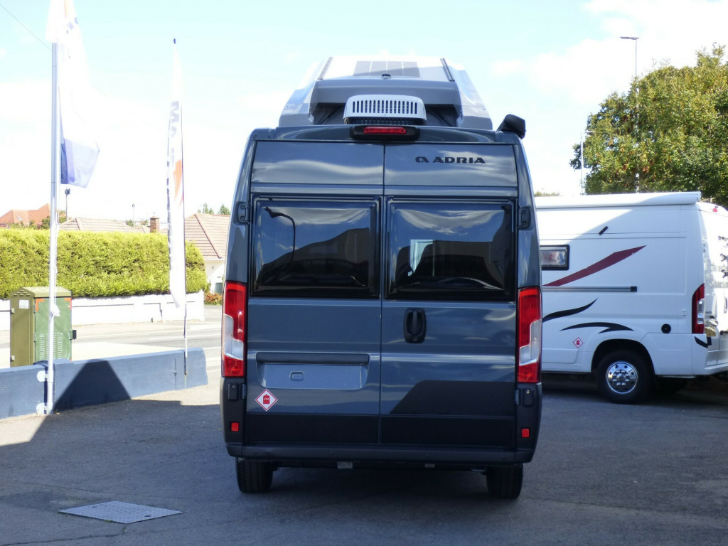 The stunning new 2026 model Adria Twin Sports 640 SGX is in stock now at Solent. One of the most sought after van conversions on the market, the Twin Sports is a superbly designed and built motorhome at home off the beaten track or travelling on adventures in foreign lands. The thoughtful design means there is a lot of storage space and every inch of the 6.36m is used well. The Twin is Fiat Ducato based featuring the new 2.2l 180bhp engine and 8 speed automatic transmission. Also fitted with the optional Lux pack, it boasts LED headlamps and a full LCD driving display. Behind the swivel seats is a dinette that seats 4 in comfort. A ladder accesses the pop-top roof with a comfortable, large double bed. To the side, the kitchen is fitted with a gas oven/grill, a 2 burner gas hob and a fridge/freezer. Opposite, behind a tambour door is the bathroom with cassette type toilet, wash hand basin and a clever partition for the shower. The bedroom has a large electric elevating double bed which can be moved out of the way to provide a huge storage area, ideal for transporting bikes. Heating is provided by a diesel heater with hot water by a Whale Gas boiler. Other features for this Adria Twin Sports 640 SGX include: Truma Habitation Air Conditioning, Pleated Cab Blinds, Navigation, Carpets, Thule Omnistor wind out awning, Pop-Top roof, Solar Panel, Flyscreen for sliding door, Larger 138l Fridge/freezer, Twin Leisure Batteries, Pull out platform, Heated Mattress and Insulation Canvas for Pop Top, Leather upholstery and Fiat Lux Pack. L. 6.36m, W. 2.05m, H. 2.60m, 3,500kg. 4 Berth, 4 Seatbelts, Delivery Mileage. Free Solent Pack worth £1655 comprising Scorpion S5 Alarm & Tracker, 22'' Falcon Smart TV, Falcon Soundbar and Falcon 4G motorhome WiFi! 0 bhp engine, adaptive cruise control, alloy wheels, automatic transmission, carpets, fiat lux pack, flyscreen for sliding door, habitation air conditioning, heated mattress option, iso fix child seat fixings, larger fridge option, leather upholstery, pleated cab blinds, pop top, reversing camera, solar panel, thule awning, twin leisure battery option, webasto diesel heating, free prestige pack worth £1655!, outdoor table holder, sliding door closing assistance, 16'' Alloys