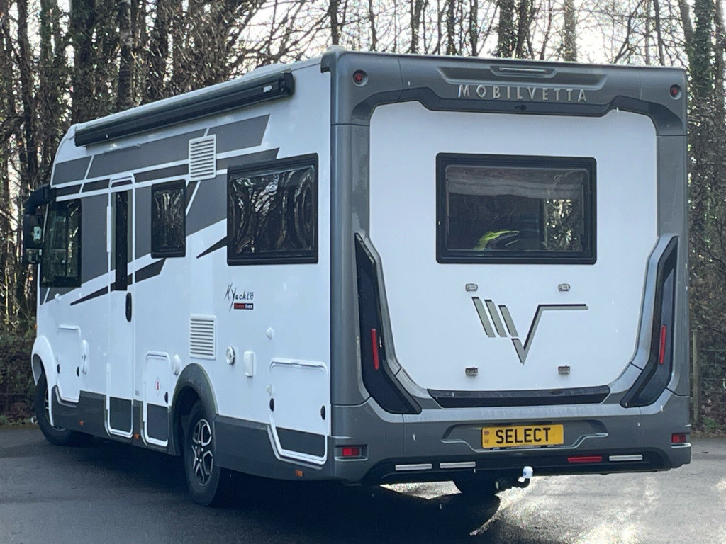 Step into luxury touring with this stunning 2023 Mobilvetta K-Yacht 95 Techno Line, a flagship A-class motorhome that blends Italian design flair with cutting-edge comfort. With just 2,285 miles on the clock, this example is virtually as new and boasts a beautifully spacious rear lounge, flooded with natural light and designed for effortless relaxation. Whether you're entertaining guests or unwinding after a day on the road, the premium furnishings, refined finishes and generous layout create a true lounge-on-wheels experience.This K-Yacht 95 is exceptionally specified, featuring over £12,000 of factory extras to elevate every journey. Highlights include the smooth 9-speed automatic transmission, self-levelling system for instant campsite setup, habitation air conditioning, climate control, solar panel, and a fitted awning for extending your living space outdoors. Designed for refined, long-distance touring with total comfort and confidence, this Mobilvetta represents a rare opportunity to own a top-tier A-class motorhome with an outstanding specification and minimal mileage. uetooth connection, climate control, colour satnav, half leather, cassette toilet, double bed, hand basin, shower, wardrobe, fridge, fridge freezer, grill, hob, oven, 3 point seatbelts, air conditioning, central locking, park assist camera, power steering, abs, air bag, immobiliser, locking wheel nuts, remote central locking, tracker fitted, 3rd party sound system, radio, tv aerial, front armrest, alloy wheels, towbar - fixed, 240v hookup, adblu, alde heating system, alloy wheels, awning, awning rail, cab air conditioning, cab blinds, cat 1 tracking system, cruise control, digital dash, drop down bed, external bbq point, fully insulated, hot and cold water, hydraulic self levelling, insulated and heated water tank, loose carpets, media pack, remis cab blinds, solar panel, steering wheel with radio control, swivel captain chairs, television, towbar, wi-fi
