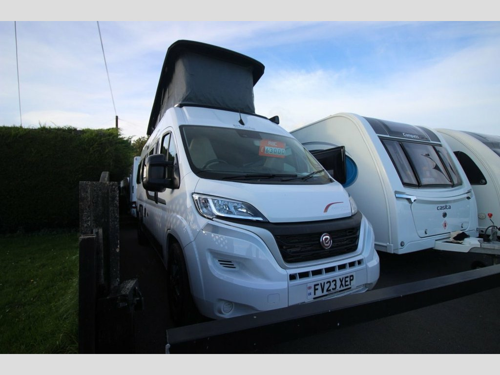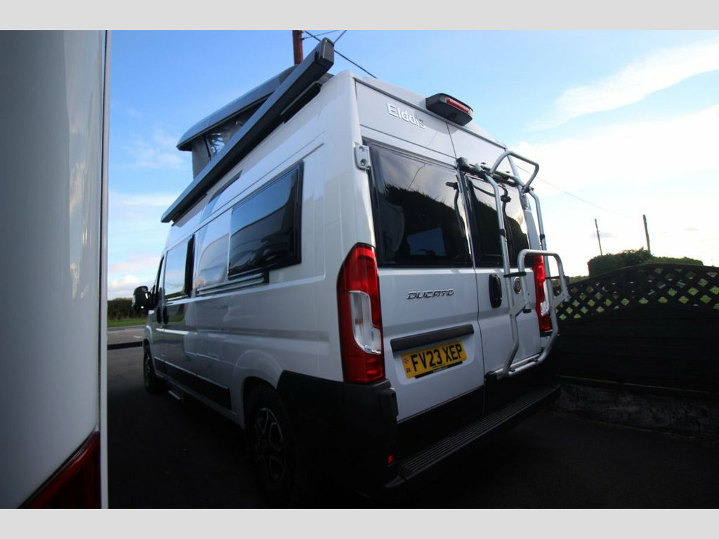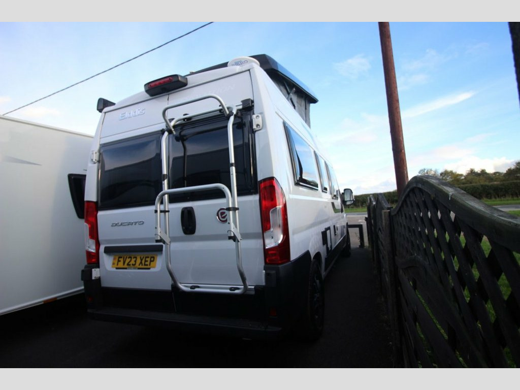 £63,000 (Cost £80,000 new!) FV23 XEP (2023) Only 13,000 miles! IMMACULATE CONDITION! ONE OWNER FROM NEW! FULL SERVICE HISTORY Elddis Evolution CV80 Camper van (factory built by Elddis, Elddis warranty until 2nd June 2026, 2.2 Ducato turbo diesel engine, (140 BHP) 9 SPEED AUTOMATIC GEARBOX, (a £9,000 option when new) 4 berth 4 seatbelts, Air conditioning, Cruise control, Bluetooth hands free, Wind out Dometic awning, Electric entry step, Underslung LPG tank with easy fill connection, Leisure battery, Slimline solar panel on the roof, On board water tank with frost protection, Pop top roof has ladder access and sleeps 2 on a king-size premium mattress, Rear sofas slide together to make a large double bed, 3,500 kg (so anyone can drive it) Only 6 metres long, 2 metres wide and 2.76 metres high (with pop top down) Large fridge freezer, Washroom with toilet, sink and shower, Oven, grill and 3 x electric hot plates, Built-in microwave, Habitation heater and hot water system, Finance available up to a 15 year term, Part exchange welcome, HPI clear, Before collection we will carry out an engine service and a habitation service to National Caravan Council Standards.