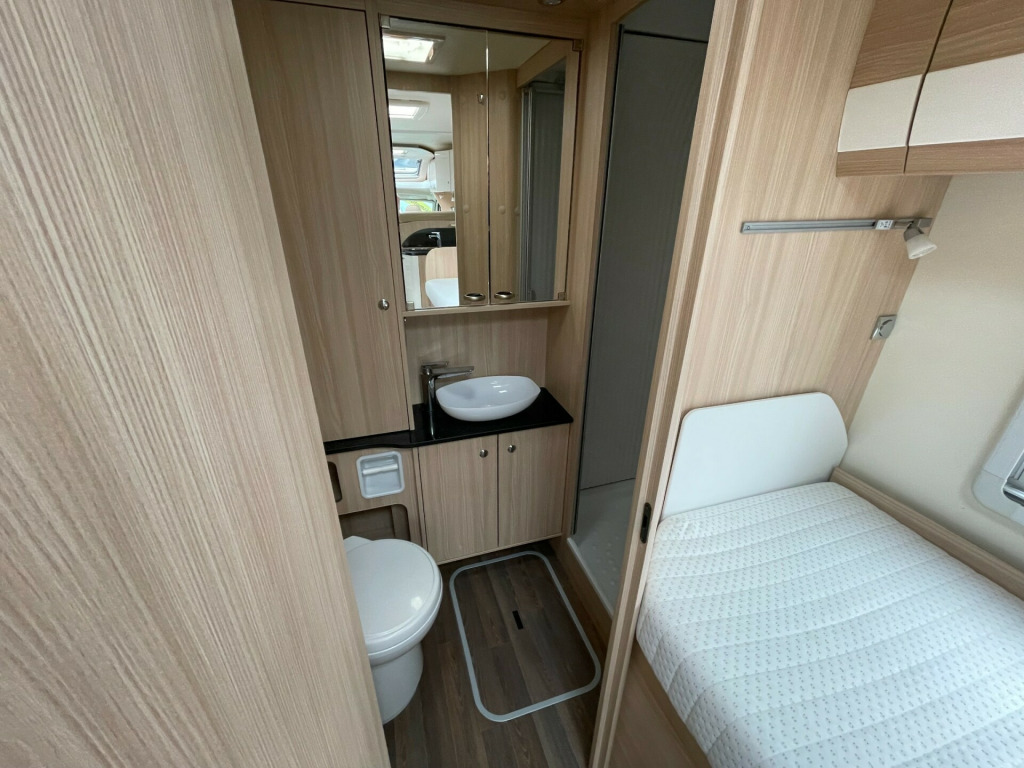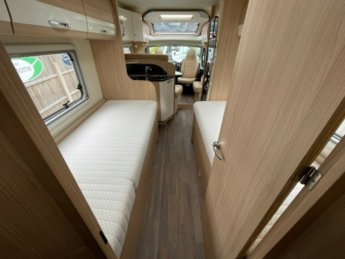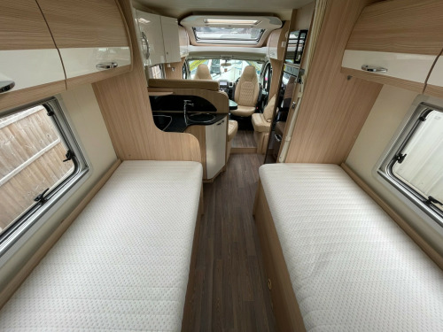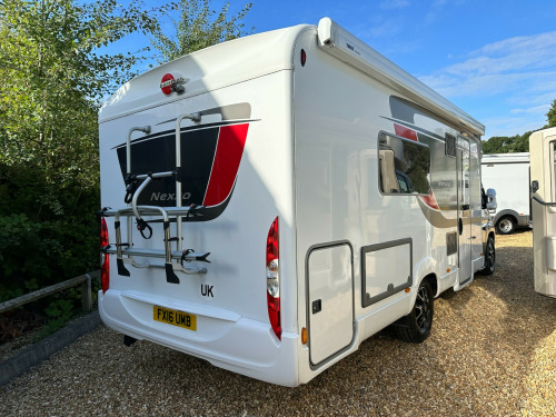 This fantastic tourer for two the Burstner Nexxo T720,With two fixed single beds at the rear and rear full bathroom with separate shower.A really nice luxurious design , Front dinette with travelling seats that converts into an extra occasional bed made up with the cushions.Don't miss out on this Automatic Tourer !!!!!!'' We have attempted to make the above description as accurate as possible but please bear in mind that ho nest mistakes can happen so this description cannot form any part of any future contract. Some items fitted to models on display may be excluded from said contract' ning, bike rack, cab aircon, cruise control, gas bbq, leather trim, plgv (under 3.5t), reverse camera, separate shower, single fixed beds , solar panel