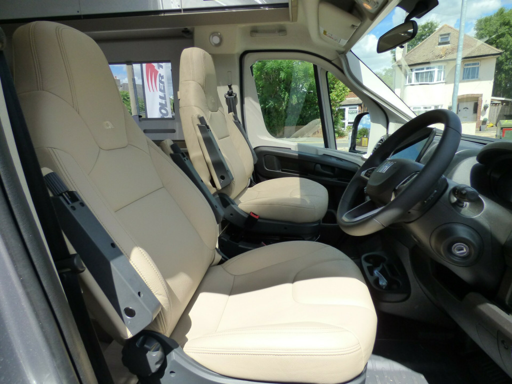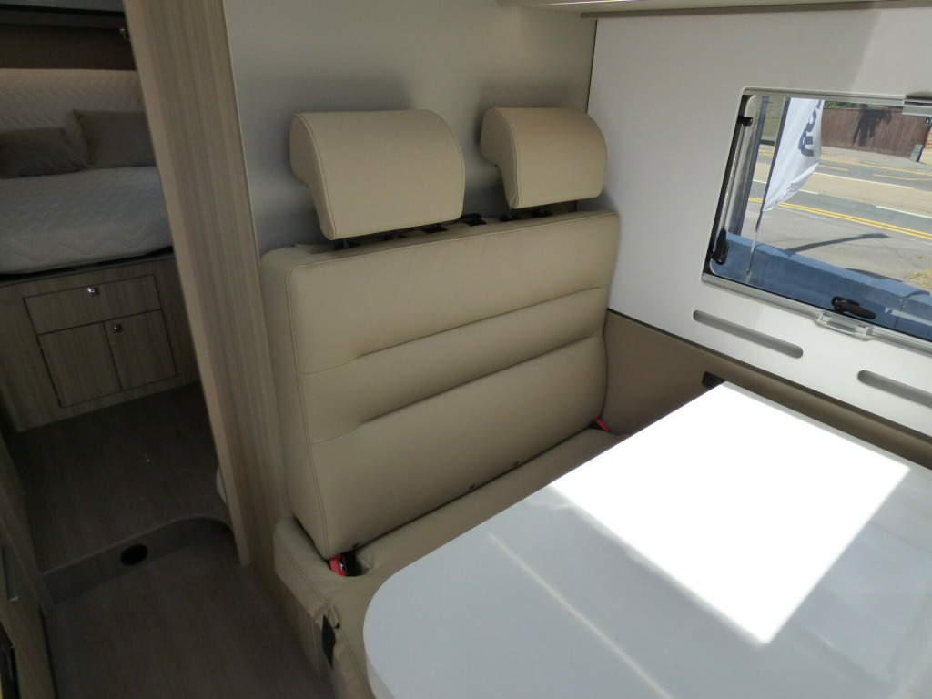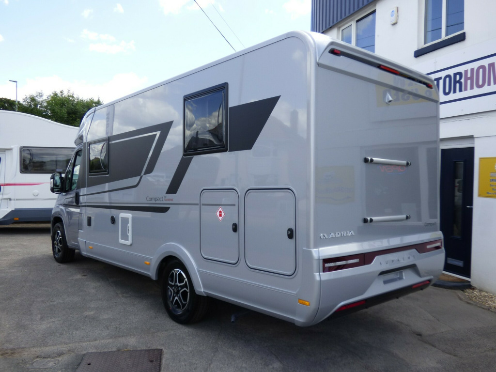 Special Offer - Free Solent Prestige Pack worth £2250 included with this motorhome comprising: Scorpion Defender S5+ Alarm & Tracker, Falcon 22'' Smart TV, WiFi, Soundbar and 11kg Gaslow refillable LPG system.The beautifully built Compact Supreme SC offers all the features of a full size coach-built motorhome, but narrower, making ideal for touring those narrow lanes and more convenient to park too. Based on the new model Fiat Ducato chassis with 140bhp engine and new 8 speed automatic transmission, it also features the Fiat Lux pack which includes LED headlights and full LCD dash board with the new large infotainment monitor. Behind the front swivel seats, there is a dinette for 4. To the side, the well equipped kitchen has a 3 burner Gas hob, Gas oven/grill and a fridge/freezer. Opposite, behind a tambour door, the bathroom has a cassette type toilet, wash hand basin and a clever swinging wall to reveal a shower cubicle. The rear bedroom has a large, comfortable Island bed with adjustable backrest and storage under. There is ample cupboard space throughout and on of the main highlights has to be the huge sunroof giving the motorhome a very airy feel. Heatin and Hot water is by Truma combi boiler and other features of the Compact Supreme SC include: Leather Upholstery, Pleated cab blinds, navigation system, reversing camera, Thule Omnistor wind out awning, Solar Panel, carpets and Fiat Lux Pack. L. 6.99m, W. 2.12m, H. 2.75m, 3,500kg, 2 Berth, 4 Seatbelts, Delivery Mileage. loy wheels, automatic transmission, carpets, leather upholstery, pleated cab blinds, reversing camera, solar panel, wind out awning, free prestige pack worth £1655!, 16'' Alloys
