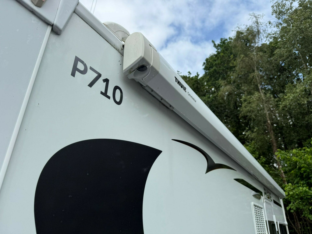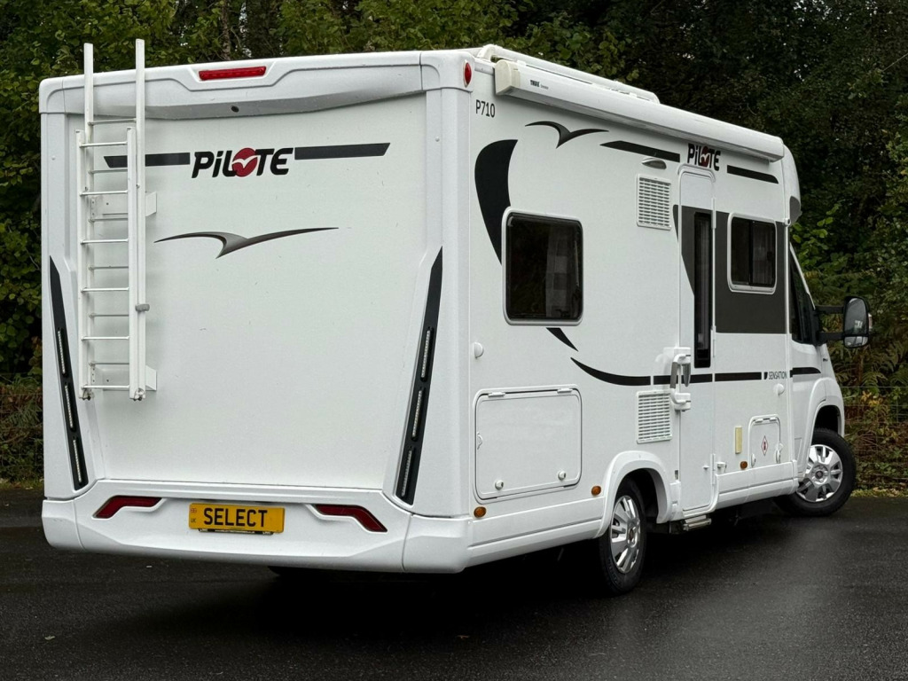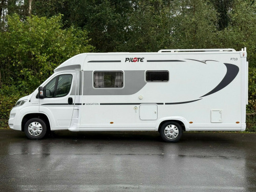 Get ready to hit the open road in style with the 2018 Pilote P710 Sensation a sleek, fully equipped motorhome built for comfort, convenience, and adventure! With a side-mounted awning for effortless outdoor living, this 4-berth beauty features a full kitchen setup including a gas hob, combination oven & grill, and a fridge/freezer to keep your meals fresh wherever you roam. Up front, enjoy modern driving comforts like air conditioning, cruise control, Bluetooth connectivity, and a CD/radio system. Swivel front seats transform into a cozy dining area, seamlessly connecting to the fixed French double bed and a well-designed toilet and shower space for added privacy on the go.Perfect for adventurous families, the P710 Sensation comes with five seat belts and offers year-round comfort thanks to the Truma Blown Air Heating System. Whether you're staying at a campsite or going fully off-grid, the 100W roof-mounted solar panel keeps your power topped up, giving you true freedom on the road. And when it comes to peace of mind, you're covered with central locking, an engine immobiliser, and a high-spec Cat 1 alarm system. Practical, secure, and stylish this is more than just a motorhome; it's your ticket to unforgettable journeys. r conditioning, bluetooth connection, cassette toilet, double bed, end bedroom, fixed bed, shower, wardrobe, 3-burner hob, fridge, grill, oven, side kitchen, sink/drainer, 3 point seatbelts, air conditioning, central locking, electric windows, park assist camera, power steering, cruise control, parking camera, trip computer, alarm cat 1, central locking, immobiliser, digital radio, radio, tv aerial, colour coded body, solid paint, steel wheels, awning, cab air conditioning, rear view camera, solar panel, swivel captain chairs, truma heating system