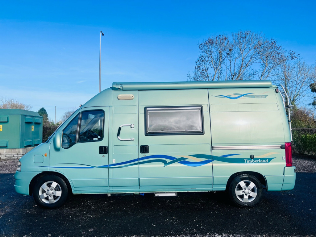 For sale is a 2004 Timberland Freedom motorhome with 46000 miles on the clock. This diesel vehicle has a MOT valid until 25/04/2026 and comes with a full service history. The motorhome is a 2 berth, with rear seat belt. 5.5 M long.Tow bar. Awning Roof ladder. Alloy wheels. It also features a solar panel for off-grid power, making it perfect for adventures. The motorhome has just been given a new MOT and is ready for the road. Step into the world of freedom and explore the open roads with this reliable and well-maintained motorhome. Supplied with New MOT New habitation check. Gas safety certificate. Comprehensive warranty. Part exchange welcome. Car caravan camper. No finance. Open everyday. Located Bs246se. ,