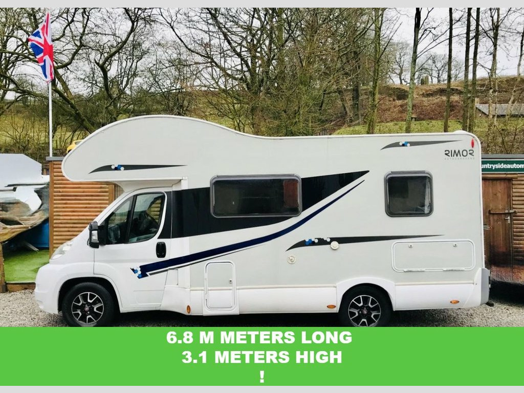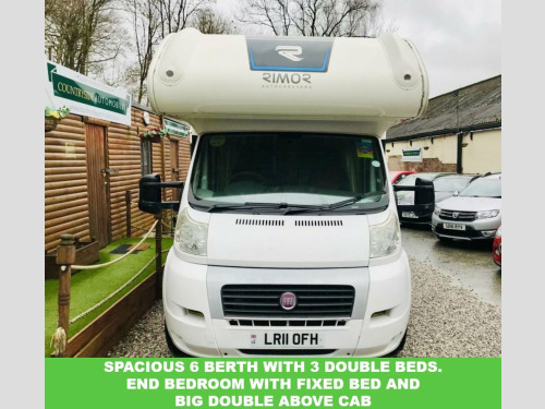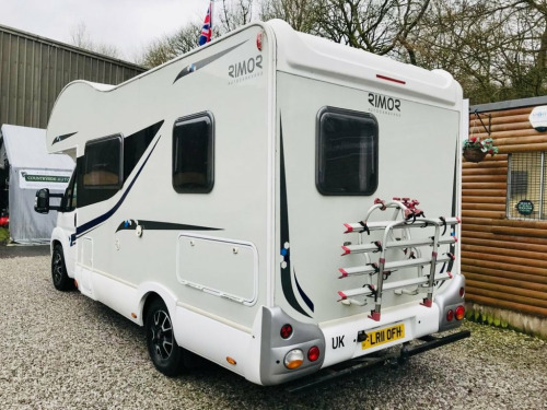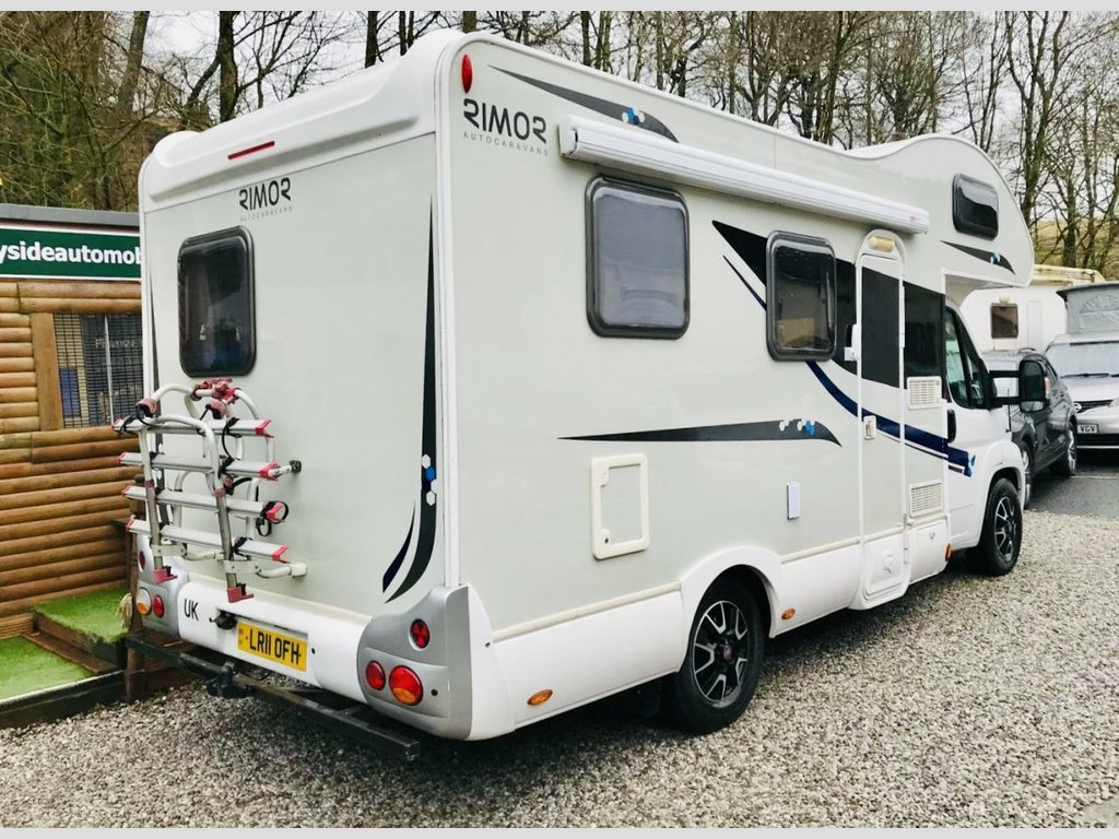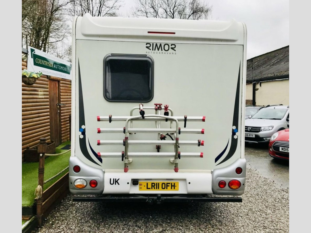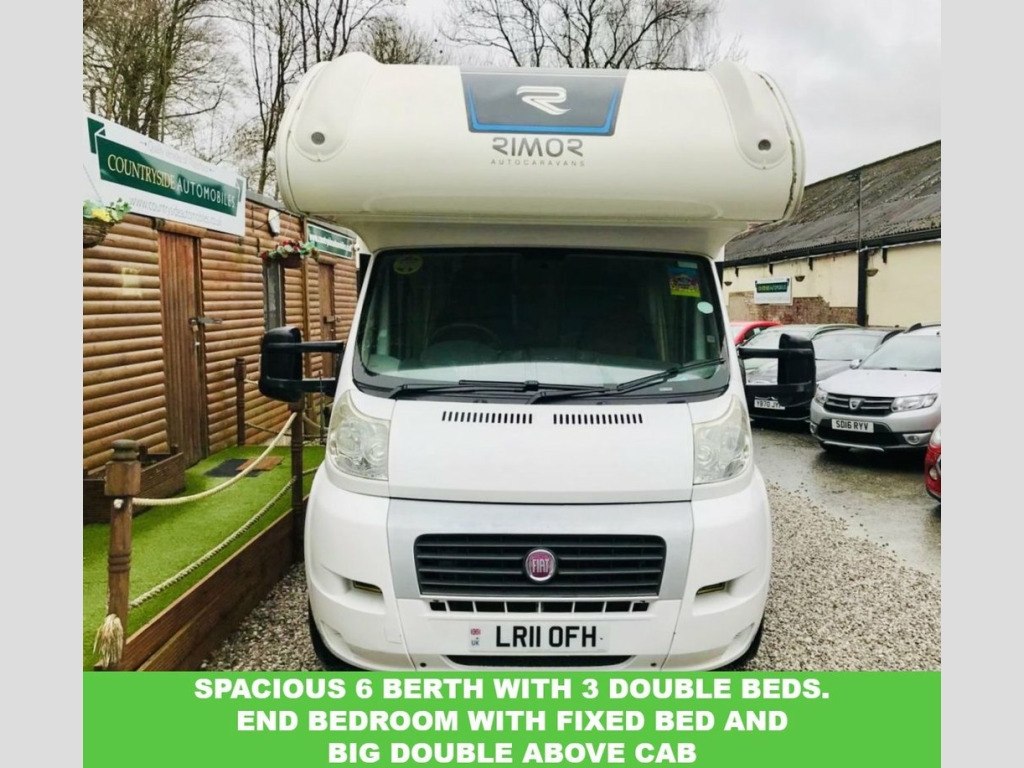 Here we have a very spacious Rimor Trimarano 3 Motorhome, very well maintained example and has had all belts and servicing done recently, 6 berth with rear fixed French bed and also fixed bunk above cab so if only needed 4 Berth then no beds would need putting up at night time. Lots of storage with many overhead cabinets, Diesel heating system plumbed into vans tank, Logic TV And DVD player mounted so can be viewed from living area and bunk. Dometic 3 way fridge freezer, Microwave oven, Oven hob and grill, Thetford cassette toilet system with large toilet room and shower. The exterior is fitted with a Fiamma F45 Awning and also 4 bike bike rack. Also has a tow bar. The cab is also well equipped with Sat nav and reversing camera and also Air conditioning. SUPERB SPACIOUS LAYOUT !