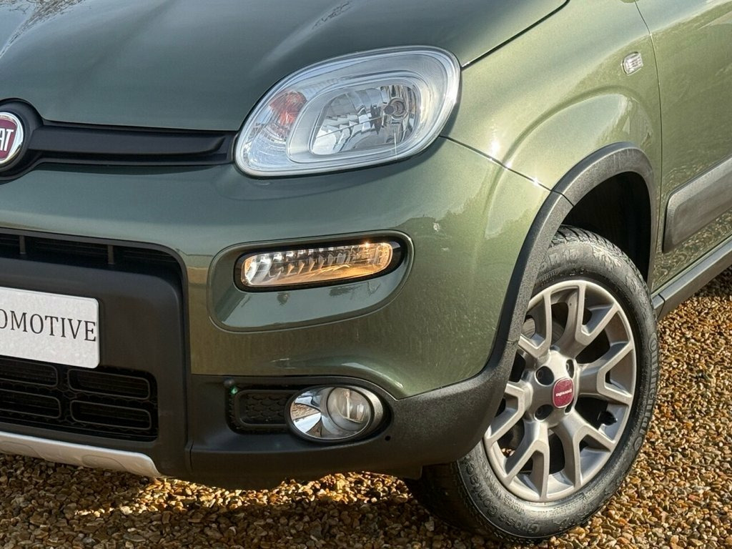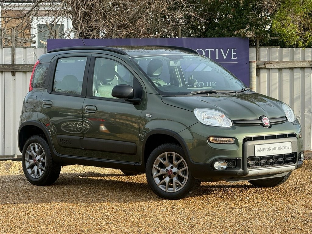 Metallic Tuscany Green, Rare Petrol 4X4 Model, Fabric and Eco Green Leather Seats, Air Conditioning, Anthracite Alloy Wheels, Radio/CD/USB/Aux in with Media, LED DRls, Blue and Me Bluetooth Hand Free Telephone System with Voice Control, Electric Windows, Electric Mirrors, Trip Computer, Roof Rails, , Rear Parking Sensors, Multi Function Steering Wheel, Roof Rails, ABS , ESP with Traction Control, 4WD System, Electronic Diff Lock, Multi Airbags, Alarm, Cross Climate Tyres, Rare Petrol 4X4 Panda Tuscany Green, 12V Socket, 15in Alloy Wheels - Dark Metal, 2 Rear Head Restraints, 4 Airbags, 4x4 Styling, ABS with EBD, Audio Controls on Steering Wheel, BAS - Brake Assistance System, Bluetooth Radio with Smartphone Cradle-U, Body Coloured Bumpers, Body Coloured Door Handles, Body Coloured Door Mirrors, Dualdrive Power Steering, Electrically Adjustable Heated Door Mirr, ESP - ASR - Hill Holder, Fabric and Eco-Leather - Green and Grey, Fix and Go Puncture Repair Kit, Front Fog Lights, Front Power Windows, Height Adjustable Drivers Seat, Height Adjustable Steering Wheel, High Central Console, Leather Steering Wheel and Gear Knob, Luggage Compartment Light, Manual Air Conditioning, Raised Sus