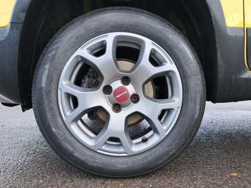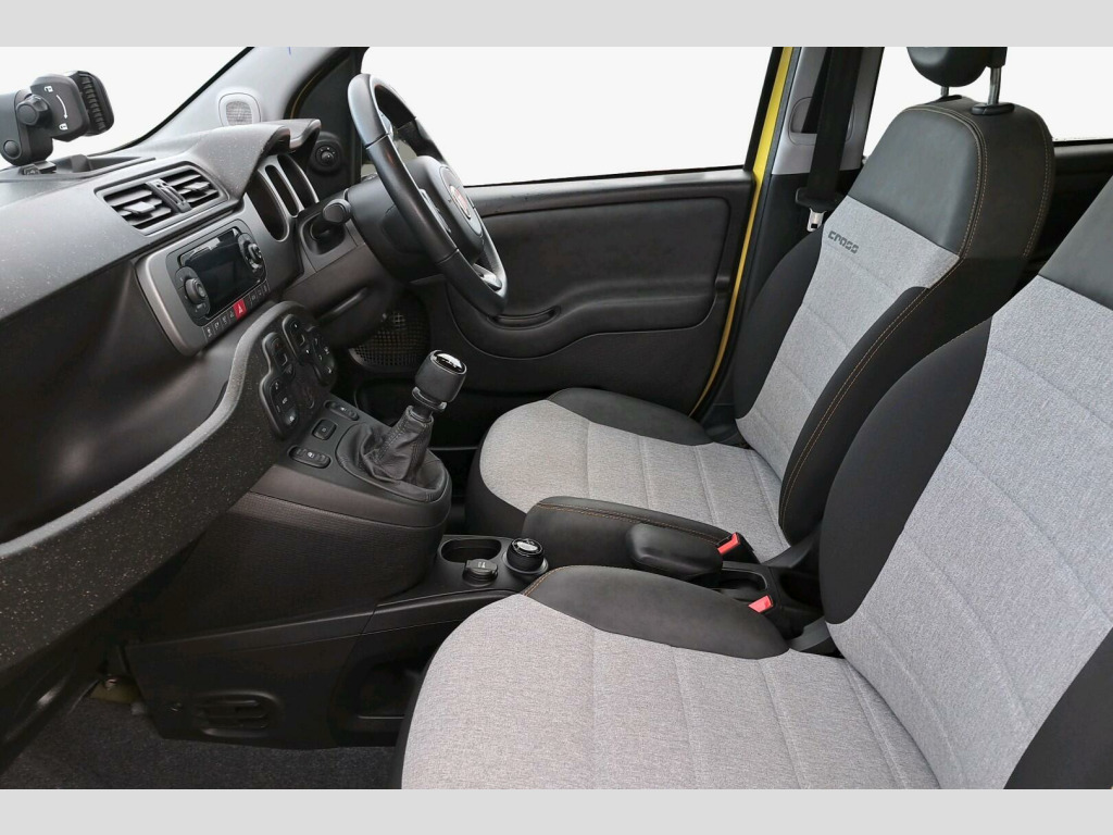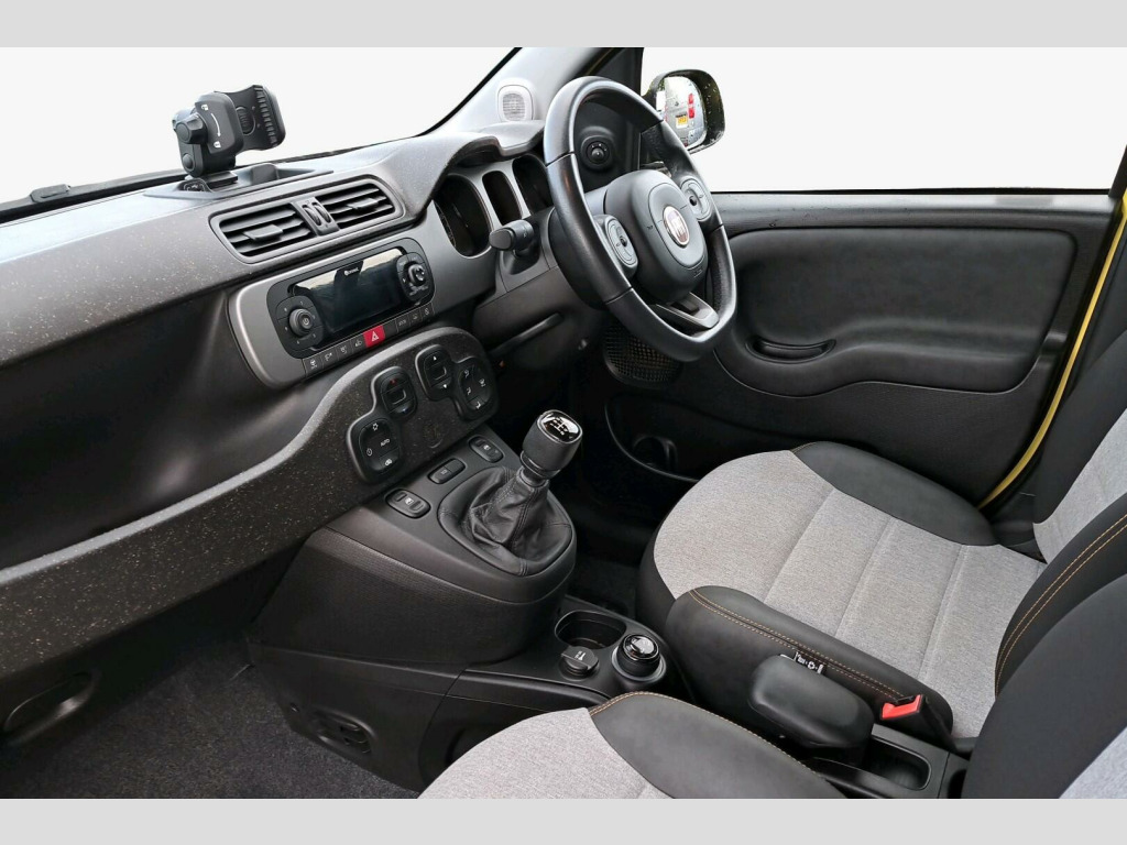 This 2021 Fiat Panda Cross is a Euro 6 compliant, four wheel drive model, perfect for navigating both city streets and country lanes. Powered by an efficient 0.9L petrol engine, this vehicle offers a practical and capable driving experience. It comes equipped with rear parking sensors and a parking assistance system to make manoeuvring easier. For added comfort and privacy, it features dark tinted privacy glass.Stay connected and entertained with the Bluetooth radio, which includes USB and DAB digital radio capabilities, along with a handy smartphone cradle. The striking front tow hooks in brilliant red not only add a distinctive visual touch but also indicate its readiness for towing. Inside, you'll find automatic climate control to ensure a comfortable cabin temperature in all conditions. This Fiat Panda Cross also benefits from a low insurance group, making it an economical choice for many drivers.. 12V Socket, 15in Alloy Wheels - Off Road, 6 Airbags, All Terrain Selector Switch with 3 Modes - Auto - Off-Road - Hill Descent Control, Audio Controls on Steering Wheel, Automatic Climate Control, Bluetooth Radio with Smartphone Cradle - USB and DAB - Digital Radio, Body Coloured Door Mirrors, Door Handles - Black, ESC - Electronic Stability Control Including ASR - Hill Holder - ABS - EBD and BAS, Electrically Adjustable Heated Door Mirrors, Five Seat with 40-60 Split Fix and Fold Rear Seat - Three Rear Seatbelts and Head Restraints, Fix and Go Puncture Repair Kit, Floor Mats, Front Fog Lights, Front Power Windows, Front Tow Hooks in Brilliant Red, Front and Rear Bumper with Ultrashine Silver Skid Plate, Height Adjustable Drivers Seat, Height Adjustable Steering Wheel, High Central Console, LED Daytime Running Lights, Leather Steering Wheel and Gear Knob, Luggage Compartment Light, Power Steering, Rear Differential Gear Locking, Rear Parking Sensors, Remote Control Central Door Locking, Roof Bars - Ultrashine Silver, Side Airbags, Side Mouldings - Ultrashine Silver, Side Skirts - Black, Tyre Pressure Monitor System, Windows - Dark Tinted Privacy Glass.