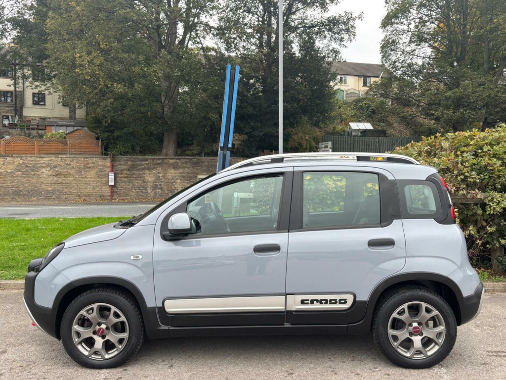 WE ARE PLEASED TO OFFER THIS HIGHLY DESIRABLE HIGHLY MAINTAINED RARE LOW MILEAGE ECONOMICAL LOW INSURANCE RATED PETROL EURO SIX FIAT PANDA 1.2 CITY CROSS FIVE DOOR + FINISHED IN THE BEST COLOUR OF GREY PAINTWORK AND IS FITTED WITH CITY CROSS EXTERIOR STYLING PACK AND IS COMPLEMENTED WITH A HALF GREY CLOTH AND BROWN ARTICO LEATHER UPHOLSTERY + ONLY A MERE 15,891 MILES HAS BEEN COVERED IN TOTAL BY ONE RETIRED OWNER PLUS THE SUPPLYING MAIN DEALER AND IS BACKED WITH AN EXCELLENT SERVICE HISTORY WHICH IS COMPRISED OF FIVE SERVICES + THE SERVICES HAVE BEEN CARRIED OUT AT 3033 MILES, 5702 MILES, 9896 MILES, 13616 MILES AND 13616 MILES + THE MOT IS TILL THE 2ND OF OCTOBER 2026 + OUTSTANDING CONDITION THROUGHOUT AS WOULD EXPECT FOR THE AGE AND MILEAGE + DRIVES SUPERB + FULL CITY CROSS SPECIFICATION WHICH INCLUDES FULL ELECTRIC PACK / CITY MODE / MULTI FUNCTION STEERING WHEEL / BLUETOOTH HANDS FREE PHONE PACK / 15 MULTI SPOKE ALLOY WHEELS FINISHED IN DARK GREY AND ARE FITTED WITH CONTINENTAL TYRES ALL ROUND / TINTED GLASS / BLACK ROOF BARS PLUS MUCH MORE + HANDBOOK PACK + STAMPED SERVICE BOOK + 2 X KEYS + ANY TRIAL OR INSPECTION IS WELCOMED + HPI CLEAR WITH CERTIFICATE + SIX MONTHS NATIONWIDE WARRANTY IS INCLUDED +_THIS TRULY CHERISHED EXAMPLE MUST BE VIEWED TO BE APPRECIATED AND VIEWING IS HIGHLY RECOMMENDED. We have been established in Baildon for over 20 years. All our vehicles are fully inspected, prepared and valeted. We are finance specialists. Part exchange is welcome. All major credit and debits accepted. Open 7 days. Our postcode is BD177EX.