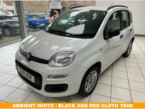This 2019 Fiat Panda Easy is a fantastic example, having been owned by just one careful keeper from new.  Powered by an efficient 1.2 litre petrol engine, this Euro 6 compliant model offers a smooth and economical driving experience.  Inside, you'll find a good level of safety with four airbags, including side airbags, and the practical benefit of folding rear seats for versatile storage.  It also comes equipped with a Brake Assistance System (BAS) for added confidence and is fitted with summer tyres.  The Fiat Panda Easy stands out with its low insurance group rating, making it an affordable choice for many drivers. Furthermore, its low CO2 emissions indicate a more environmentally friendly performance compared to many other vehicles in its class. This combination of low running costs and thoughtful features makes this Panda a sensible and appealing option. 12V Socket, 14in Steel Wheels, 2 Rear Head Restraints, 4 Airbags, ABS with EBD, Ambient White, BAS - Brake Assistance System, Black Door Mirrors, Body Coloured Bumpers, Cloth - Black-Grey with Red Stitching, Door Handles - Black, Dualdrive Power Steering, ESP - ASR - Hill Holder, Fix and Go Puncture Repair Kit, Folding Rear Seats, Front Power Windows, Head Restraints - Front Anti-Whiplash, Height Adjustable Drivers Seat, Height Adjustable Steering Wheel, Longitudinal Roof Bars - Black, Luggage Compartment Light, Manual Air Conditioning, Manually Adjustable Door Mirrors, Radio-CD and MP3 Player, Remote Control Central Door Locking, Side Airbags, Summer Tyres, Tyre Pressure Monitor System