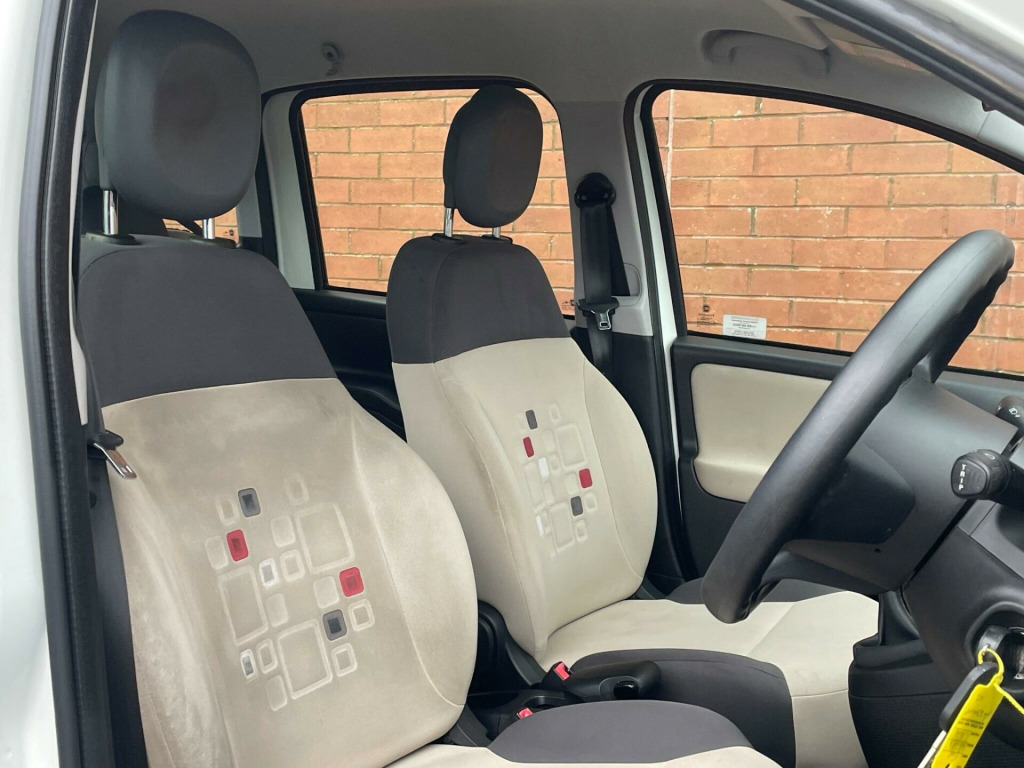 This 2013 Fiat Panda Lounge boasts a clear vehicle history and has been owned by only two careful owners, offering you peace of mind. This popular city car features a fuel efficient 1.2L petrol engine and meets Euro 6 emissions standards. Inside, you'll find manual air conditioning to keep you comfortable whatever the weather.The Fiat Panda Lounge is a practical choice, and its low insurance group rating means it is economical to run, making it an excellent option for new drivers or those looking to keep running costs down. This well maintained example is ready for its next adventure., ue&me - hands free system with usb port, space saver spare wheel, climate pack, 12v socket, 15in alloy wheels, abs - anti-lock braking system, airbags - driver, airbags - passenger, body coloured bumpers, body coloured door handles, body coloured door mirrors, daytime running lights, dualdrive power steering, ebd - electronic brakeforce distribution, esp - electronic stability programme, electric front windows, electrically adjustable heated door mirrors, fix and go puncture repair kit, fog lights, gsi - gear shift indicator, head restraints - front anti-whiplash, head restraints - rear, isofix child seat attachments, luggage compartment - courtesy light, manual air conditioning, pollen filter, radio-cd and mp3 player, remote central locking, roof rails, seats - folding rear back, side mouldings - black, speakers x6, steering wheel - height and reach adjustment, sunvisor - drivers with mirror, tyre pressure monitor system, window airbags