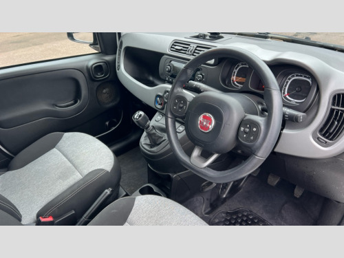 Fiat Panda 1.2 Lounge 5dr Dual drive PAS, Outside temperature display, Stop/start system, Trip computer, 4 speakers, Bluetooth radio with Smartphone cradle, USB and AUX-in, Black bodyside mouldings, Body colour bumpers, Body colour door handles, Body colour door mirrors, Electric front windows, Front fog lights, Rear wiper, Roof rails, 12V socket, Adjustable leather steering wheel with audio controls, Cloth upholstery, Driver's sun visor with vanity mirror, Floor mats, Front spot light with timer, Height adjustable driver's seat, Isofix attachments on outer rear seats, Leather gear knob, Luggage compartment lighting, Passenger sunvisor with vanity mirror, ABS/EBD, Anti-whiplash front headrests, Brake assist function, Driver airbag, ESP + ASR + hill holder, Front passenger airbag, Tyre pressure monitoring system, Window airbags, Immobiliser, Remote central locking, 15" Dark metal alloy wheels, Summer tyres