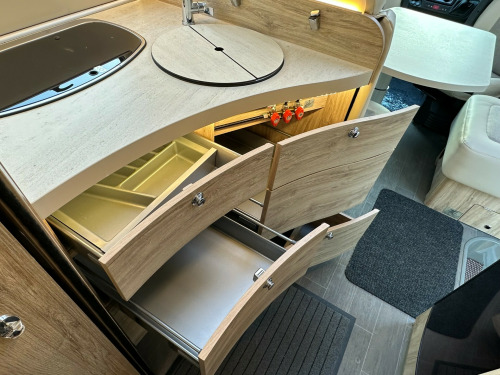 A Luxurious 2 Berth Tourer from Eura Mobil the Profila PT 720 QB.A beautifully sleek looking low profile , with rear island bed and plenty of storage, both side of the rear bedroom offers a lovely separate shower one side and a separate toilet area the other. Well appointed kitchen with all amenities along with a good size half dinette with forward facing seat belts for those extra travelers.Don't miss out on this stunning example call one of the Sales Team 01202 855531 Option 1 for Sales. '' We have attempted to make the above description as accurate as possible but please bear in mind that honest mistakes can happen so this description cannot form any part of any future contract. Some items fitted to models on display may be excluded from said contract' 0 bhp engine, 2 berth, 240 mains & usb sockets, 4 seat belts, alloy wheels, automatic, awning, battery charger, blinds, cab aircon, camera, cruise control, flyscreens, fresh water tank, fridge, front dinette with travelling seat belts, gas hob, half dinette, heating, heki roof light, island fixed bed, leisure battery, lots of outside storage, low mileage, mains hookup, outside storage access, plgv (under 3.5t), swivel cab seats, tv aerial & tv fitted, waste tank