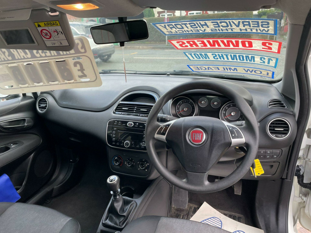 This 2014 Fiat Punto Pop is a great find with remarkably low mileage for its age, having covered just 59,000 miles. This particular example has had only two owners and benefits from a partial service history, with its last service also at 59,000 miles. It is powered by an efficient 1.2 litre petrol engine and meets Euro 6 emissions standards. For your peace of mind, it comes with a 3 month warranty and a full 12 months MOT will be provided upon purchase.The Fiat Punto Pop is known for being in a low insurance group, which can help keep your running costs down. This makes it an attractive option for many drivers. With its sensible mileage, limited ownership, and a fresh MOT, this Punto represents a well maintained choice in the used car market.. 15in Steel Wheels, ABS - Anti-Lock Braking System, Airbags - Driver, Airbags - Passenger, BAS - Brake Assistance System, Body Coloured Door Handles, Body Coloured Door Mirrors, Deadlocks, Drivers Knee Airbag, Dualdrive Power Steering, EBD - Electronic Brakeforce Distribution, Electric Front Windows, Fix and Go Puncture Repair Kit, Head Restraints - Rear, Height Adjustable Drivers Seat, Radio-CD and MP3 Player, Remote Central Locking, Steering Wheel - Height and Reach Adjustment, Trip Computer, Window Airbags, Cloth - Charcoal-Grey, Blue&Me - Predisposition for TomTom, Alarm Predisposition, Rear Spoiler - Body Coloured, Air Conditioning, Leather Steering Wheel. Part service history