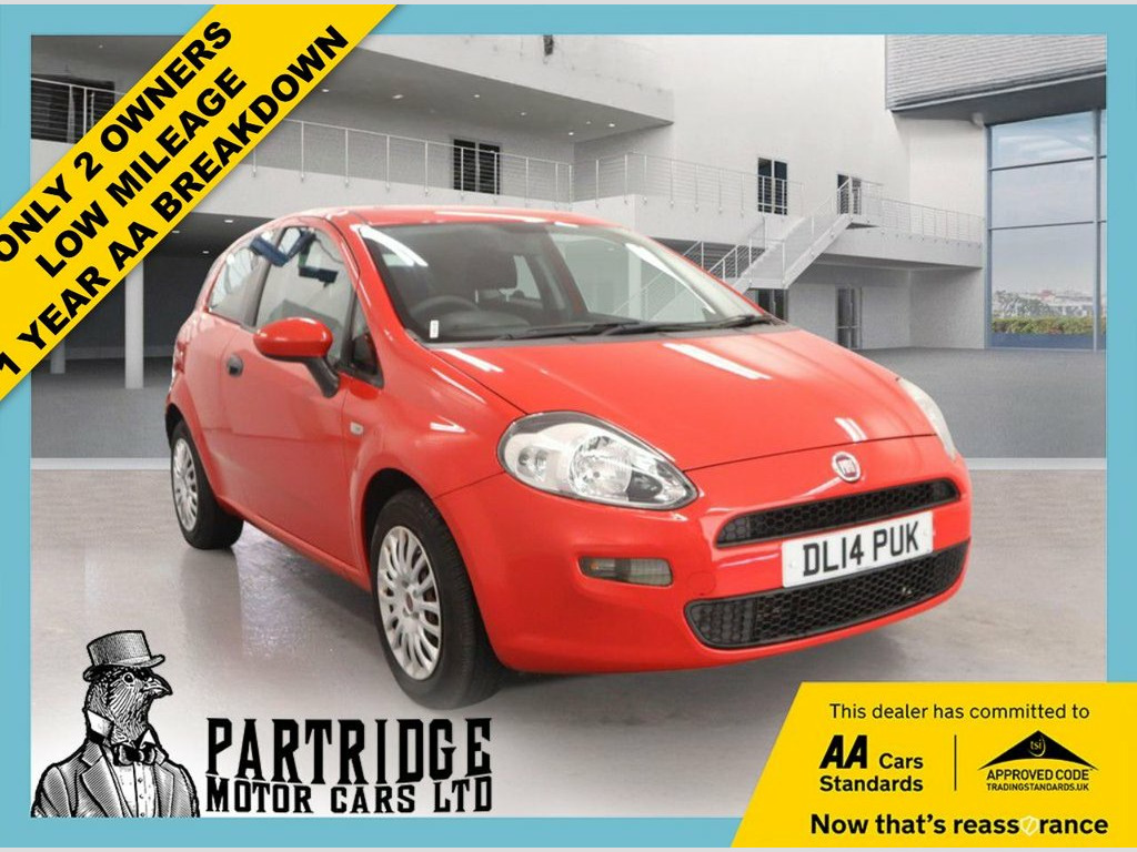HPI CLEAR, SUPPLIED WITH NEW MOT, SUPPLIED WITH NEW SERVICE, ONLY 2 OWNERS FROM NEW, LOW MILEAGE, CHEAP INSURANCE, RADIO CD PLAYER, 3 DOOR, MANUAL, 3 MONTHS WARRANTY, 1 YEAR AA BREAKDOWN, AA DEALER **2014 Fiat Punto Pop 1.2: 2 Owners, Low Mileage, New MOT & Service! AA Approved!** ******** The perfect first car, boasting an impeccable history! This 2014 Fiat Punto is a fantastic example, with just **2 owners from new** and a **very low mileage** for its age. Finished in a stunning Exotica Red, this stylish Italian hatchback offers a great alternative to the usual choices. It's renowned for being cheap to insure and economical to run, making it the ideal car for a new driver or as a smart and affordable runaround. ******** This vehicle will be fully prepared by our workshop to the highest standard. For the next owner's complete peace of mind, it will be supplied with a **brand new service** and a **fresh 12-month MOT**. ******** **Key Features:** *** **Excellent Provenance**: A fantastic history with just 2 owners from new and a very low mileage. *** **1.2L Petrol Engine**: A brilliantly economical and reliable engine that's perfect for keeping insurance and fuel costs down. *** **Stylish Italian Design**: A beautifully designed hatchback with a distinctive and sporty look, especially in the 3-door bodystyle. *** **Perfect First Car**: A superb combination of style, low running costs, a fun-to-drive nature, and a great history. *** **Cheap Insur 15in Steel Wheels, ABS - Anti-Lock Braking System, Airbags - Driver, Airbags - Passenger, BAS - Brake Assistance System, Body Coloured Door Mirrors, Cloth - Charcoal-Grey, Deadlocks, Drivers Knee Airbag, Dualdrive Power Steering, EBD - Electronic Brakeforce Distribution, Electric Front Windows, ESP - Electronic Stability Programme, Exotica Red, Fix and Go Puncture Repair Kit, GSI - Gear Shift Indicator, Head Restraints - Rear, Height Adjustable Drivers Seat, Radio-CD and MP3 Player, Remote Central Locking, Steering Wheel - Height and Reach Adjust, Trip Computer, Tyre Pressure Monitor System, Window Airbags