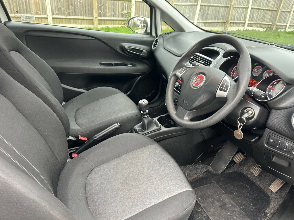 ULEZ COMPLIAN,T, This 2015 Fiat Punto 1.2 Pop Hatchback 3dr Petrol Euro 6 (69 bhp) has just 74000 miles on the clock and comes in an ambient white colour. It's ULEZ compliant and boasts 5 seats and 3 doors, making it perfect for a small family or commuting around the city. With an MOT that expires on 09/06/2026, you can enjoy peace of mind knowing it's roadworthy for years to come. This hatchback runs on petrol and is equipped with air conditioning, cloth charcoal-grey interior, and 15in alloy wheels for added comfort and style. The included 15in steel wheels provide extra durability for your daily drives. With its sleek design and reliable performance, this Fiat Punto is ready for whatever the road has in store for you. in steel wheels, body coloured door mirrors, electric front windows, fix and go puncture repair kit, abs - anti-lock braking system, airbags - driver, airbags - passenger, bas - brake assistance system, deadlocks, drivers knee airbag, ebd - electronic brakeforce distribution, esp - electronic stability programme, remote central locking, window airbags, dualdrive power steering, gsi - gear shift indicator, trip computer, tyre pressure monitor system, head restraints - rear, height adjustable drivers seat, steering wheel - height and reach adjustment, radio-cd and mp3 player