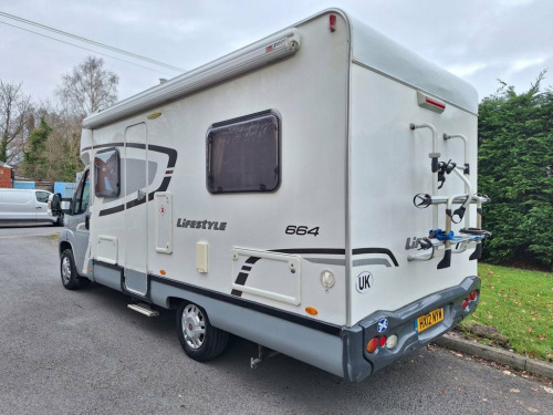 A fantastic example of this epic Swift Escape Dealer Special Motorhome. Finished with a Metallic Grey Cab and white body with complimenting Oatmeal & Biscuit Upholstery this really looks classy. This Motorhome is based on the bullet proof and ever reliable Fiat Ducato chassis, 2.2 engine featuring Many great options, such as Air Conditioning, Bluetooth Telephone integration, Full Electric Pack, Multifunction Steering Wheel and USB port. The Swift Lifestyle 664 Model was a special order model that was based on the Best Selling swift Escape but with More optional extras as standard to really separate if from the rest. The Style and dimensions of the Motorhome mean that the layout maximises the internal area and makes this a very warm feeling tourer with plenty space to move around but the van itself is pretty compact at just 6.7 metres long and the low profile roof allows much more access than an over cab bed model. This motorhome is easy to manoeuvre in car parks and tight lanes, making it ideal for all areas of Europe. The van features a large double bed, Solar Panel, Dual Fuel Heating, Fridge and 3 burner Hob. Large toilet and Shower room, Seatbelts for 4 people and Swivelling Captains Seats as well as a spacious dinette area which easily coverts into another bed for two people. For longer adventures there is a fixed bike rack to the rear, electric step to aid entry and exit and a large awning. The van also features Built in WiFi and a TV point. This van and it's