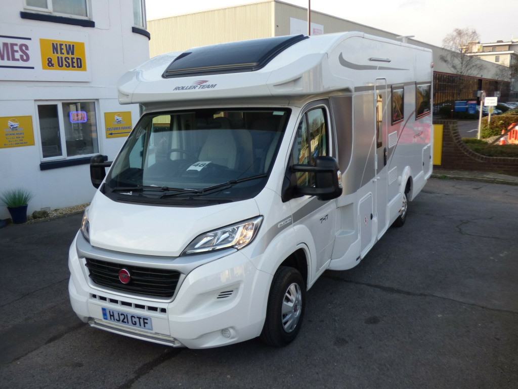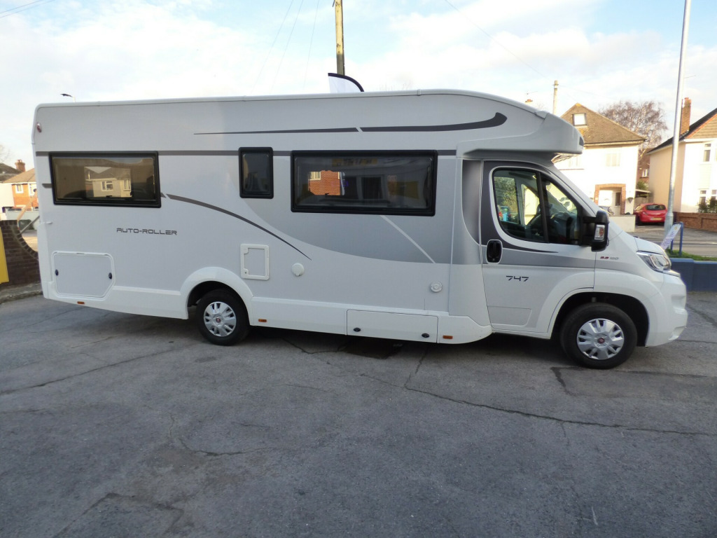 Special Offer - 3 year Autoguard Warranty with this motorhome!Auto-Roller 747 motorhome based on the Fiat Ducato chassis with 120bhp engine and 6 speed manual transmission. The 747 has long been a family favourite offering sleeping for up to 6 and travelling for up to 5. The front dinette turns into a double bed and has an electric elevating double bed above. The central kitchen has a Thetford gas oven and grill, 3 burner gas hob and a Dometic fridge/freezer. Opposite is the bathroom with shower cubicle, cassette type toilet and wash hand basin. The U shaped rear lounge can convert to two single or one large double bed and the motorhome has a great level of storage cupboards. Heating and hot water is provided by a Truma duel fuel system and other features for this Auto-Roller 747 include: TV & Antenna, Solar Panel, Bike Rack, reversing camera and carpets. 6 berth/5 seatbelts. Ex Rental, VAT qualifying. L. 7.47m, W. 2.35m, H. 2.95m, 3,500kg. 33,021 miles. ke rack, carpets, reversing camera, solar panel, tv & antenna, vat qualifying, free 3 year autoguard warranty!, 15'' Steel