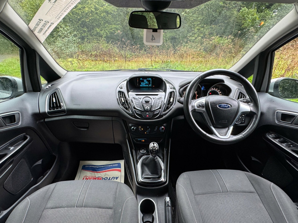 For sale is a 2014 Ford B-MAX 1.0 EcoBoost Zetec 5dr MPV with 101235 miles on the clock. This petrol vehicle is ULEZ compliant and comes with MOT valid until 18/06/2026. With 5 seats and 5 doors, this spacious car is perfect for families or those in need of extra space. It has had 1 previous registered keeper and includes features such as the Easy fuel capless refuelling system, power-assisted steering, trip computer, 6 speakers, and an Aux-in socket. Don't miss out on this reliable and practical car. sy fuel capless refuelling system, pas, trip computer, 6 speakers, aux-in socket, dab radio/cd player, mp3 connection, remote audio controls on steering wheel, body colour bumpers with black rubbing strip, body colour door handles, body colour grille with chrome surround, body colour tailgate handle, body coloured door mirrors, chrome beltline trim, courtesy headlamp delay, door mirror integrated indicators, electric adjustable heated door mirrors, electric front and rear windows + one touch + global open/closing, front fog lamps, front intermittent wash wipers, led daytime running lights, quickclear heated windscreen, rear wiper, 3 rear headrests, 3 spoke leather steering wheel, 60/40 split rear seat back, air conditioning, ambient interior lighting, centre console with stowage tray/bottle holder/cd stowage/front and rear 12v power point, child observation mirror, courtesy lights with map reading light, driver sunglasses holder, fold flat passenger and rear seat, front headrests, front seat back map pockets, glovebox illumination, height adjustable front seats, isofix standard child seat restraint mounting, leather trimmed gearknob, new york cloth upholstery, reach + rake adjustable steering column, rear tilting/removable parcel tray, satin chrome interior door handles, tie down hooks, variable boot floor, 3x3 point rear seatbelts, abs + traction control, deflation detection system, driver and passenger airbags, drivers knee airbag, emergency brake assist, esp, front and rear curtain airbags, front passenger airbag deactivation, front side airbags, hill start assist, intelligent protection system (ips), warning triangle and first aid kit holder, immobiliser, locking wheel nuts, remote central double locking, 15'' Alloys