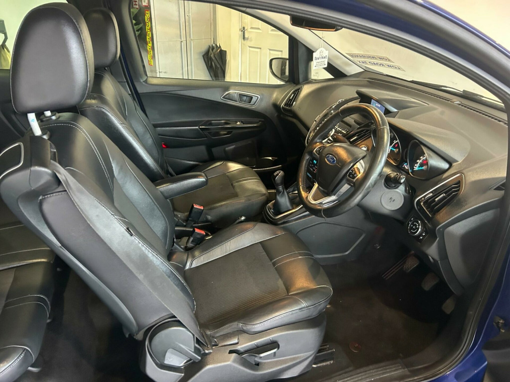 12 MONTHS MOT..PARKING SENSORS.. HALF LEATHER.. PANORAMIC ROOF..CLIMATE CONTROL..FINANCE AVAILABLE.. PART EXCHANGE WELCOME.. NEW TYRES …0151 235 9165..Discover this 2015 Ford B-Max T Titanium X, a well presented vehicle ready for its next owner. This model boasts a 1.0 litre petrol engine and comes in the desirable Titanium X trim. Inside, you'll find a host of features designed for comfort and convenience, including heated driver and passenger seats, a premium Sony DAB audio system, and electronic automatic temperature control for effortless climate management. The convenience of keyless entry and automatic headlights further enhances the driving experience.This Ford B-Max offers impressive efficiency, achieving a highlight fuel economy of 58 miles per gallon, alongside low CO2 emissions, making it an economical choice. Its performance is also noteworthy, with an acceleration of 0 to 62 miles per hour in just 11.2 seconds. These figures demonstrate how this B-Max performs favourably compared to other vehicles in its class, offering a blend of practicality, comfort, and efficient motoring.. 12V Power Socket - Front, 12V Power Socket - Rear, 16in Alloy Wheels - 5x2 Spoke, 4.2in TFT Display, ABS - Anti-lock Braking System, AUX Connection, Adjustable Load Floor in Luggage Compartment for Easy Loading of Cargo, Airbag - Front Passenger, Airbags - Curtain, Airbags - Curtain Rear, Airbags - Drivers Knee, Airbags - Front Side, Airbags - Front Thorax, Airbags - Passenger Deactivation, Ambient Lighting, Armrest - Drivers, Armrest - Folding Centre - Rear, Automatic Dimming Rear View Mirror, Automatic Rain Sensing Wipers, Body Colour Bumpers, Body Colour Exterior Mirrors, Bright Finish on Upper Door Line, Central Locking - Keyless Entry, Centre Console - Bottle-Can Holder, Centre Console - Stowage Tray, Child Observation Mirror, Convenience Pack, Courtesy Lights with Map Reading Lights, Cruise Control, DDS - Deflation Detection System, Door Handles - Body Colour, Door Mirrors with Integrated Indicators, Drivers Airbag, EATC - Electronic Automatic Temperature Control - Climate Control, EBA - Emergency Brake Assist, EBD - Electronic Brakeforce Distribution, EPAS - Electric Power Assisted Steering, ESP - Electronic Stability Programme, Electric Windows - Front and Rear with One Touch, Emergency Assistance, Emergency Brake Warning, Floor Mats - Carpet - Front and Rear, Ford Easy-Fuel Capless Refuelling System, Ford Eco Mode - Driver Information System, Ford SYNC, Front Fog Lights, Front Lower Grille - High Gloss with Chrome Surround, Front Seat - Passengers Manual Fore-Aft Adjustment, Front Seat - Seat-back Map Pockets - Driver, Front Seats - Passengers Fold-flat with Hard Seat Back, Fuel Computer, Gearshift Knob - Leather, Glovebox - Illuminated, Headlights - Automatic, Headlights - Courtesy Delay, Headlights - Halogen Projector, Heated Driver and Passenger Seats, Heated Windscreen, Hill Start Assist, IPS - Intelligent Protection System, ISOFIX, Keyless Start, LED Daytime Running Lights, Locking Wheel Nuts, MyKey, Panorama Roof, Pollen Filter, Power Fold Door Mirrors, Privacy Glass, Removable Package Tray, Scuff Plates, Seats - 60-40 Split Folding Back and Fixed Cushion, Seats - Drivers Lumbar Support, Seats - Drivers Manual Height and Fore-Aft Adjustment, Seats - Rear One Hand One Motion Fold-Flat, Sony CD-Radio Player-MP3 Compatibility, Sony DAB Audio System, Speakers - x8, Steering Column - Rake and Reach Adjustment, Steering Wheel - 3 Spoke - Leather Trimmed, Steering Wheel - Multifunction, Sunglasses Holder, Suspension - Front Stabiliser Bar, Tailgate Handle - Body Colour, Thatcham Category 1 Alarm, Tie-Down Hooks, Traction Control - TC, Tyre Repair Kit, USB Connection, Voice Control - Audio.