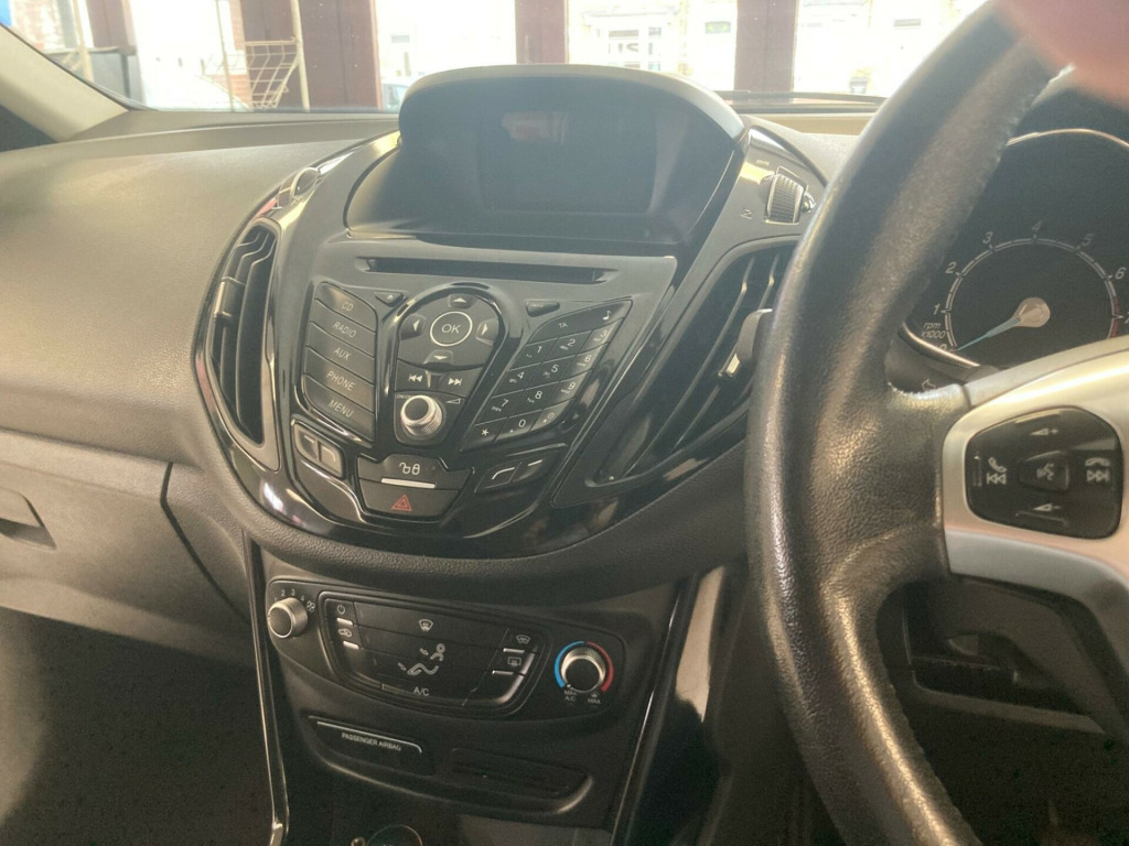 Full service & MOT2 keys2 x new tyres v power socket - front, 12v power socket - rear, 15in alloy wheels - 5x2 spoke, 3.5in dot matrix display, abs - anti-lock braking system, aux connection, adjustable load floor in luggage compartment for easy loading of cargo, air conditioning - manual, airbag - front passenger, airbags - curtain, airbags - curtain rear, airbags - drivers knee, airbags - front side, airbags - front thorax, airbags - passenger deactivation, ambient lighting, body colour bumpers, body colour exterior mirrors, bright finish on upper door line, centre console - bottle-can holder, centre console - stowage tray, child observation mirror, courtesy lights with map reading lights, dds - deflation detection system, door handles - body colour, door mirrors - electrically operated and heated, door mirrors with integrated indicators, drivers airbag, eba - emergency brake assist, ebd - electronic brakeforce distribution, epas - electric power assisted steering, esp - electronic stability programme, electric windows - front and rear with one touch, emergency assistance, emergency brake warning, ford dab audio system, ford easy-fuel capless refuelling system, ford eco mode - driver information system, ford sync, front fog lights, front lower grille - chrome surround, front seat - passengers manual fore-aft adjustment, front seat - seat-back map pockets - driver, front seats - passengers fold-flat with hard seat back, fuel computer, gearshift knob - leather, glovebox - illuminated, headlights - courtesy delay, headlights - halogen projector, heated windscreen, ips - intelligent protection system, isofix, led daytime running lights, locking wheel nuts, mykey, pollen filter, radio cd player mp3 compatible, remote central locking, removable package tray, seats - 60-40 split folding back and fixed cushion, seats - drivers manual height and fore-aft adjustment, seats - rear one hand one motion fold-flat, speakers - x6, steering column - rake and reach adjustment, steering wheel - 3 spoke - leather trimmed, steering wheel - multifunction, sunglasses holder, suspension - front stabiliser bar, tailgate handle - body colour, tie-down hooks, traction control - tc, tyre repair kit, usb connection, voice control - audio