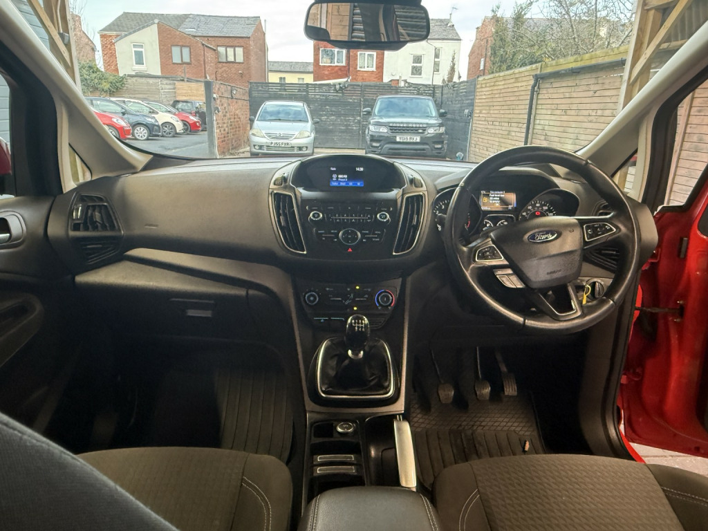 This clean Ford C-Max 1.0 EcoBoost Zetec looks great in Red and has covered 61,758 miles, comes with 2 keys, and includes a 3-stamp service history. ULEZ compliant, economical, and surprisingly quick with 123bhp and a smooth 6-speed manual. , Well equipped with Ford SYNC, DAB radio, Bluetooth, cruise control, Quickclear heated windscreen, halogen headlights, front fog lights, 16 alloys, electric heated mirrors, and a mini spare wheel. Inside you get manual air conditioning, a leather-trimmed steering wheel, height-adjustable drivers seat with lumbar support, LED interior lighting, fold-flat rear seats, and a spacious, practical cabin. , A reliable, economical and versatile family MPV with great running costs and strong EcoBoost performance. , Fully prepared and supplied with a FREE 12-month warranty. Click & Collect & Home Delivery available — call 01704 330243.