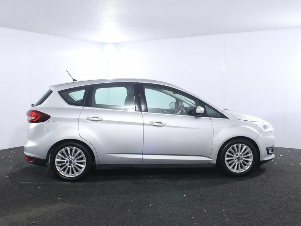 2 Owners. Full service history with 6 services. Last serviced at 39,647 miles in May 2025. Introducing the 2018 Ford C-MAX 1.0T EcoBoost GPF Titanium, a versatile 5-door MPV that blends family comfort with advanced technology and efficient performance. Finished in Moondust Silver with stylish 17-inch 15-spoke alloy wheels, body-coloured door handles and mirrors, and chrome trim on the upper door line, this Euro 6 petrol manual offers a modern and practical exterior. The package is enhanced with halogen signature headlights with LED daytime running lights, automatic on-off functionality, and front fog lights with chrome surrounds. Powered by a lively 1.0-litre turbocharged EcoBoost petrol engine delivering 125ps, the C-MAX Titanium ensures responsive acceleration and economical driving, complemented by stop-start technology. Inside, the cabin impresses with three individual fold-flat second-row seats, dual-zone electronic automatic climate control, manual lumbar adjustment for both front seats, Ford SYNC3 DAB audio system (with optional navigation), and a sliding armrest for maximum comfort. Practical touches include an overhead console with sunglasses holder and child observation mirror, keyless entry, a Quickclear heated windscreen, illuminated glovebox, and ambient LED courtesy lighting. Safety and convenience are supplied by ISOFIX child seat attachments, Intelligent Protection System, multiple airbags for driver and passengers, Thatcham Category 1 alarm, rear door chil 17in Alloy Wheels - 15 Spoke, Accessory Power Socket - 12V, Active City Stop, Airbags - Driver and Front Passenger, Airbags - Front and 2nd Row Curtain, Airbags - Front Side Impact, Alarm - Thatcham Category 1 with Volume , Anti-Lock Braking System - ABS with Elec, Automatic Dimming Rear View Mirror, Centre Console with Sliding Armrest, Chrome Finish on Upper Door Line, Courtesy Light - Ambient LED Courtesy Li, Courtesy Light - Front and Rear - LED Re, Cruise Control with Active Speed Limiter, DEATC - Dual-Zone Electronic Automatic T, Door Handles - Body Colour, Door Mirrors - Heated - Electric - Power, Drivers Seat Lumbar Adjust, Emergency Brake Warning - Automatic Haza, Enhanced Electronic
