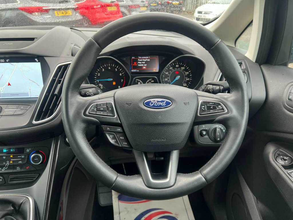 This 2017 Ford C-Max T Titanium boasts a full service history, offering you peace of mind with its well maintained provenance. This Euro 6 compliant 1.0L petrol model comes with the desirable Titanium trim, featuring a Winter Pack for those colder days with heated seats and a heated steering wheel. You'll also appreciate the convenience of the Ford Key Free System with a hands-free power tailgate, allowing for effortless keyless entry and access to the generous boot space. Safety is enhanced with the BLIS Blind Spot Information System and rear parking sensors, while the Ford SYNC2 DAB Navigation System with Bluetooth connectivity keeps you informed and entertained.. 12V Power Socket - Front, 17in Alloy Wheels - 15 Spoke, ABS - Anti-lock Braking System, Air Conditioning - Dual Zone Electronic Automatic Temperature Control, Airbags - Driver and Front Passenger, Airbags - Front and 2nd Row Curtain, Airbags - Side Impact, Alarm - Thatcham Category 1 with Volume Sensing and Perimeter, Automatic Dimming Rear View Mirror, Auxiliary Power Socket, Brake Warning Lights - Automatic Flashing of Brake Lights Under Heavy Braking, Bright Finish on Upper Door Line, Centre Console - Sliding Armrest, Courtesy Light - Front and Rear - LED, Cruise Control with Speed Limiter, Door Handles - Body Colour, Door Mirrors - Heated - Electric - Integrated Side Indicators - Body Coloured, Drivers Seat Lumbar Support, EPAS - Electric Power Assisted Steering, ESP - Electronic Stability Programme, Electric Windows - Front and Rear - One Touch - Global Opening and Closing, Floor Mats - 2nd Row Rear, Fog Light Bezel - High Gloss Black with Chrome Finish Surround, Ford Easy-Fuel Capless Refuelling System, Ford Eco Mode - Driver Information System, Ford Power Engine Start-Stop Button, Ford SYNC2 DAB Navigation System, Front Fog Lights, Front Lower Grille - Self Colour, Front Seat - Passenger Manual Height Fore-Aft Adjustment, Front Seat - Passengers Manual Lumbar Support Adjustment, Front Seats - Height Adjustable Head Restraints, Front Upper Grille - High Gloss Black with Chrome Surround and Chrome Bar, Fuel Computer, Gearshift Knob - Leather, Glovebox - Illuminated, Headlights - Automatic, Headlights - Halogen, IPS - Intelligent Protection System, ISOFIX - Child Seat Attachments, Interior Door Lever - Satin Chrome Finish, LED Ambient Courtesy Lighting, Locking Wheel Nuts, Mini Steel Spare Wheel, MyKey, Overhead Console - Sunglasses Holder, Power Rear Door Child Locks, Quickclear Heated Windscreen, Rear Seats - Three 2nd Row Individual Fold Flat Seats with Height Adjustable Head Restraints, Remote Central Locking, Scuff Plates - Front - Ford logo, Seats - Drivers Manual Height and Fore-Aft Adjustment, Steering Column - Rake and Reach Adjustment, Steering Wheel - 3 Spoke - Leather Trimmed, Tyre Pressure Monitoring System, Parking Sensor - Rear, Ford Key Free System with Hands-Free Power Tailgate, BLIS - Blind Spot Information System, Winter Pack. Full service history