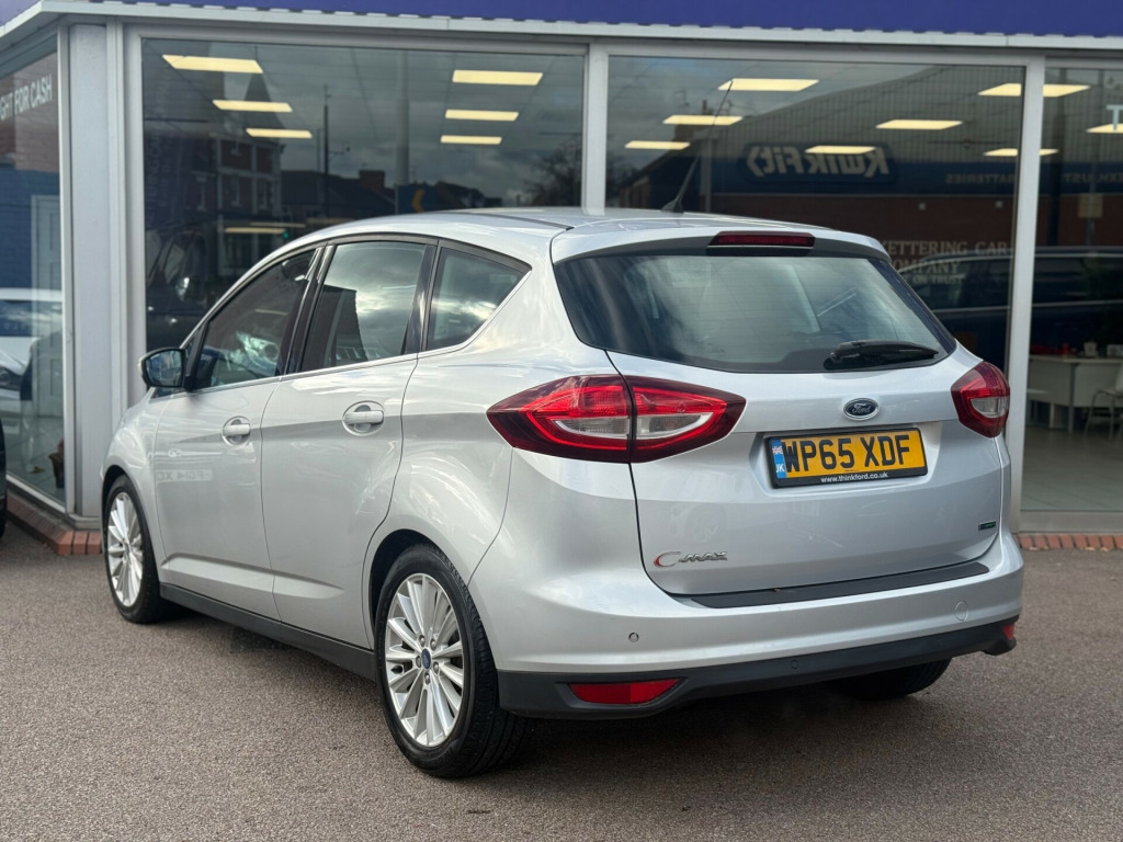 This ULEZ compliant 2015 Ford C-MAX 1.0T EcoBoost Titanium MPV with a mileage of 82650 miles and MOT valid until 30/11/2025 is a reliable and spacious 5-seater vehicle with 5 doors, suitable for family trips. Powered by a petrol engine and manual transmission, it boasts features like 12V Power Socket - Front, Auxiliary Power Socket, and Ford SYNC2 DAB Audio System for entertainment on the go. The 17in Alloy Wheels with a 15 Spoke design and Bright Finish on the Upper Door Line add a touch of style to this practical and efficient car., v power socket - front, auxiliary power socket, ford sync2 dab audio system, 17in alloy wheels - 15 spoke, bright finish on upper door line, door handles - body colour, door mirrors - heated - electric - integrated side indicators - body coloured, electric windows - front and rear - one touch - global opening and closing, fog light bezel - high gloss black with chrome finish surround, front lower grille - self colour, front upper grille - high gloss black with chrome surround and chrome bar, locking wheel nuts, mini steel spare wheel, quickclear heated windscreen, scuff plates - front - ford logo, abs - anti-lock braking system, airbags - driver and front passenger, airbags - front and 2nd row curtain, airbags - side impact, alarm - thatcham category 1 with volume sensing and perimeter, brake warning lights - automatic flashing of brake lights under heavy braking, esp - electronic stability programme, ford easy-fuel capless refuelling system, ips - intelligent protection system, isofix - child seat attachments, power rear door child locks, remote central locking, air conditioning - dual zone electronic automatic temperature control, automatic dimming rear view mirror, centre console - sliding armrest, courtesy light - front and rear - led, drivers seat lumbar support, floor mats - 2nd row rear, ford power engine start-stop button, front seat - passenger manual height fore-aft adjustment, front seat - passengers manual lumbar support adjustment, front seats - height adjustable head restraints, gearshift knob - leather, glovebox - illuminated, interior door lever - satin chrome finish, led ambient courtesy lighting, mykey, overhead console - sunglasses holder, rear seats - three 2nd row individual fold flat seats with height adjustable head restraints, seats - drivers manual height and fore-aft adjustment, steering column - rake and reach adjustment, steering wheel - 3 spoke - leather trimmed, cruise control with speed limiter, epas - electric power assisted steering, ford eco mode - driver information system, fuel computer, tyre pressure monitoring system, front fog lights, headlights - automatic, headlights - halogen