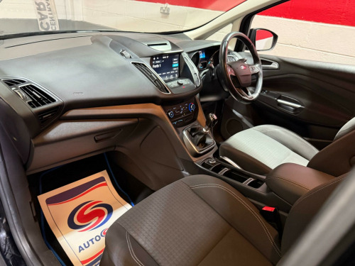 Discover this 2017 Ford C-Max Zetec, a well presented example of this versatile family car. Powered by an efficient 1.0 litre petrol engine, this Euro 6 compliant model offers a compelling blend of practicality and technology. It comes equipped with the desirable Appearance Pack, enhancing its visual appeal. Inside, you'll find the Ford SYNC3 DAB Navigation System, complete with Bluetooth connectivity, alongside a Ford DAB Audio System also featuring Bluetooth. For added convenience and safety, it includes a Load Retention Guard behind the first row of seats and manual air conditioning.This Ford C-Max Zetec stands out with its impressive fuel economy, achieving a highlight of 55 miles per gallon, which indicates it is more economical than many similar vehicles. Its low CO2 emissions further contribute to its appeal, suggesting lower running costs and environmental impact. Furthermore, the generous boot space offers ample room for shopping, luggage, or sports equipment, making it a practical choice for everyday life and longer journeys. v power socket - front, 16in alloy wheels - 5x2 spoke, abs - anti-lock braking system, air conditioning - manual, airbags - driver and front passenger, airbags - front and 2nd row curtain, airbags - side impact, alarm - thatcham category 1 with volume sensing and perimeter, auxiliary power socket, brake warning lights - automatic flashing of brake lights under heavy braking, bright finish on upper door line, centre console, courtesy light - front and rear, door handles - body colour, door mirrors - heated - electric - integrated side indicators - body coloured, drivers seat lumbar support, epas - electric power assisted steering, esp - electronic stability programme, electric windows - front with one touch on drivers side, floor mats - front, fog light bezel - high gloss black with chrome finish surround, ford dab audio system, ford easy-fuel capless refuelling system, ford eco mode - driver information system, front fog lights, front lower grille - self colour, front seat - passengers manual fore-aft adjustment, front seats - height adjustable head restraints, front upper grille - self colour with chrome surround, fuel computer, gearshift knob - leather, glovebox - illuminated, ips - intelligent protection system, isofix - child seat attachments, interior door lever - satin chrome finish, locking wheel nuts, mini steel spare wheel, mykey, quickclear heated windscreen, rear seats - three 2nd row individual fold flat seats with height adjustable head restraints, remote central locking, seats - drivers manual height and fore-aft adjustment, steering column - rake and reach adjustment, steering wheel - 3 spoke - leather trimmed, tyre pressure monitoring system, wipers - standard with 6 speed interval settings, ford sync3 dab navigation system, active city stop, appearance pack, cloth - tetra cloth - charcol black, load retention guard behind first row seats