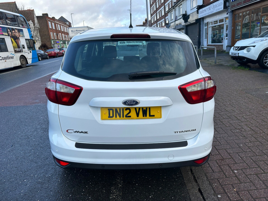 Introducing the 2012 Ford C-Max 1.6 Titanium, a white MPV with a petrol engine and manual transmission. This vehicle has 94,900 miles and two previous owners. It is ULEZ compliant and comes with a comprehensive service history and a new service. The MOT is valid until 27th November 2026, making it suitable for those in need of a family-friendly vehicle with added comfort and features. v power socket - front, 12v power socket - rear, aux connection, sony dab audio system, speakers - x9, stereo radio cd am fm mp3, usb connection - ipod connectivity, 17in alloy wheels - 15 spoke, body colour exterior mirrors, door mirrors - electrically operated and heated, door mirrors with integrated indicators, electric windows - front and rear with one touch drivers, heated front windscreen, heated washer jets, locking wheel nuts, tyre repair kit, abs - anti-lock braking system, airbags - front passenger, airbags - front and 2nd row curtain, airbags - side impact, alarm - thatcham category 1 with volume sensing and perimeter, brake warning lights - automatic flashing of brake lights under heavy braking, drivers airbag, eba - emergency brake assist, ebd - electronic brakeforce distribution, emergency brake warning, enhanced electronic stability programme, ford easy-fuel capless refuelling system, hill start assist, ips - intelligent protection system, isofix child safety seat attachments on 2nd row outer seats, remote central locking, traction control - tc, air conditioning - dual zone electronic automatic temperature control, automatic dimming rear view mirror, automatic rain sensing wipers, centre console - premium with sliding armrest stowage bins and 12v front and rear sockets, centre console - sliding armrest, child observation mirror, courtesy light - footwell illumination, courtesy light - front and rear reading lights, courtesy light - led overhead and load compartment, cup holder, drivers seat lumbar support, floor mats - front velour with ford logo, ford power engine start-stop button, front seat - passenger manual height fore-aft adjustment, front seat - passengers manual lumbar support adjustment, gear knob - leather, gearshift knob - leather, interior door lever - chrome finish, led ambient courtesy lighting, overhead console - mood lighting, rear seats - three 2nd row individual fold flat seats with height adjustable head restraints, scuff plates - front aluminium-finish with ford logo, seats - drivers manual height and fore-aft adjustment, steering column - rake and reach adjustment, steering wheel - 4 spoke leather trimmed, steering wheel - multifunction, stowage boxes - two underneath rear passengers foot area, sunglasses holder, z-shape handbrake, cruise control with adjustable speed limiter, dds - deflation detection system, front suspension - independent with macpherson struts, fuel computer, power steering, front fog lights, headlights - automatic, headlights - courtesy delay, headlights - follow me home