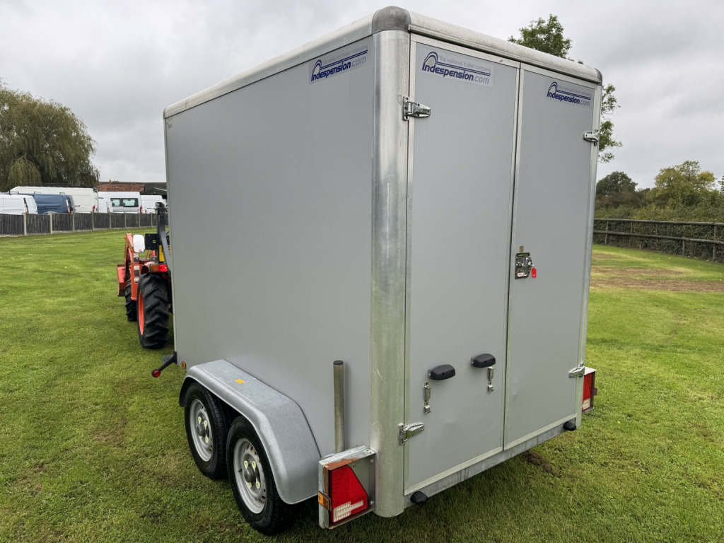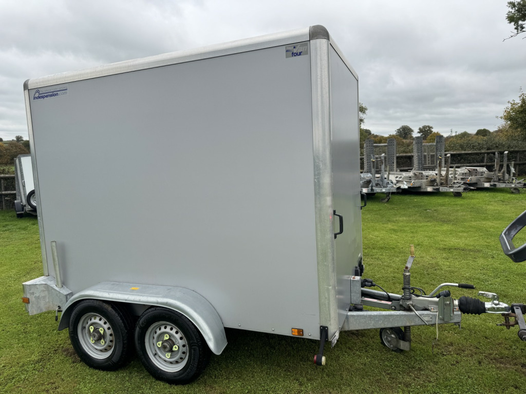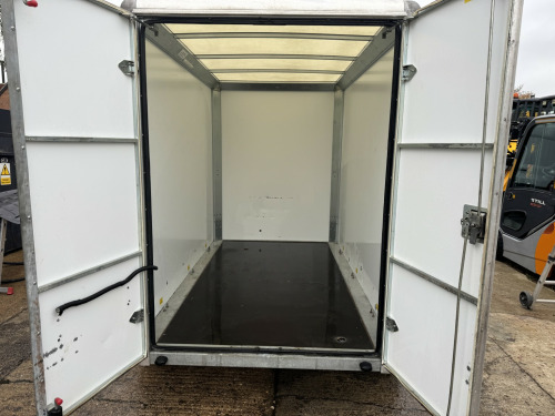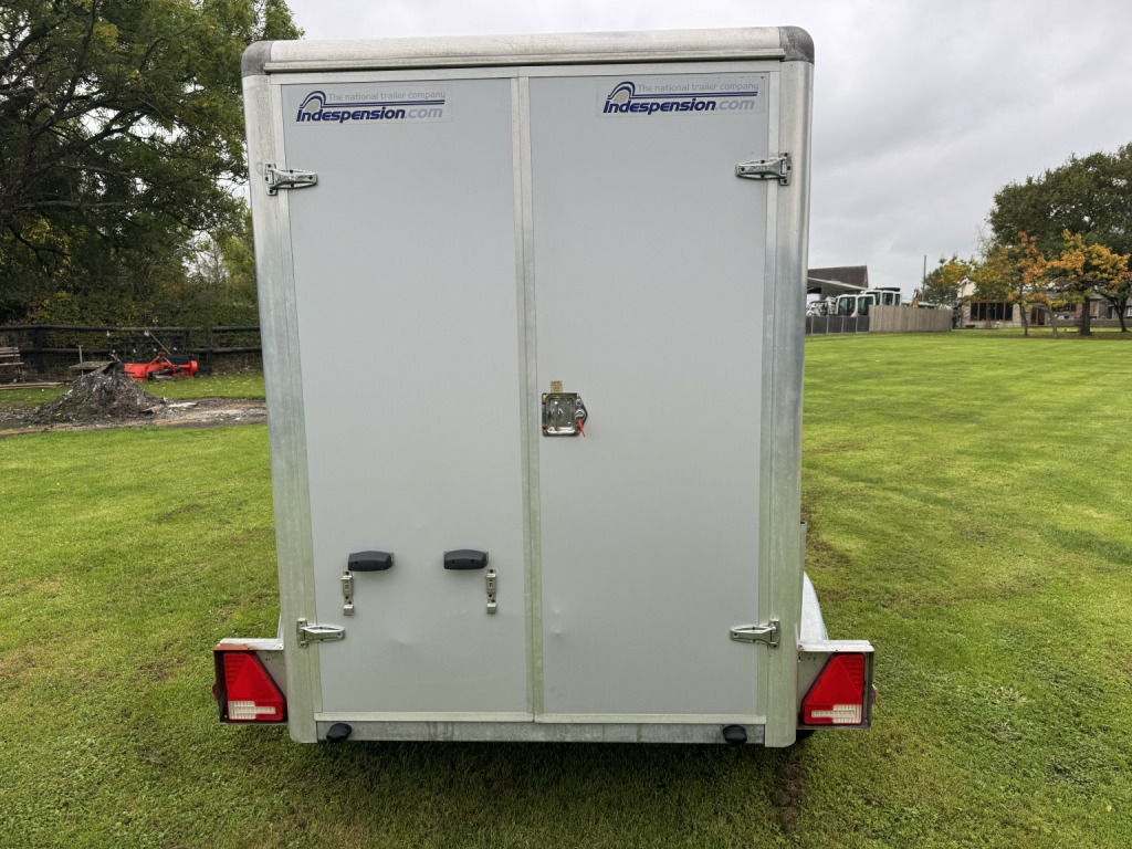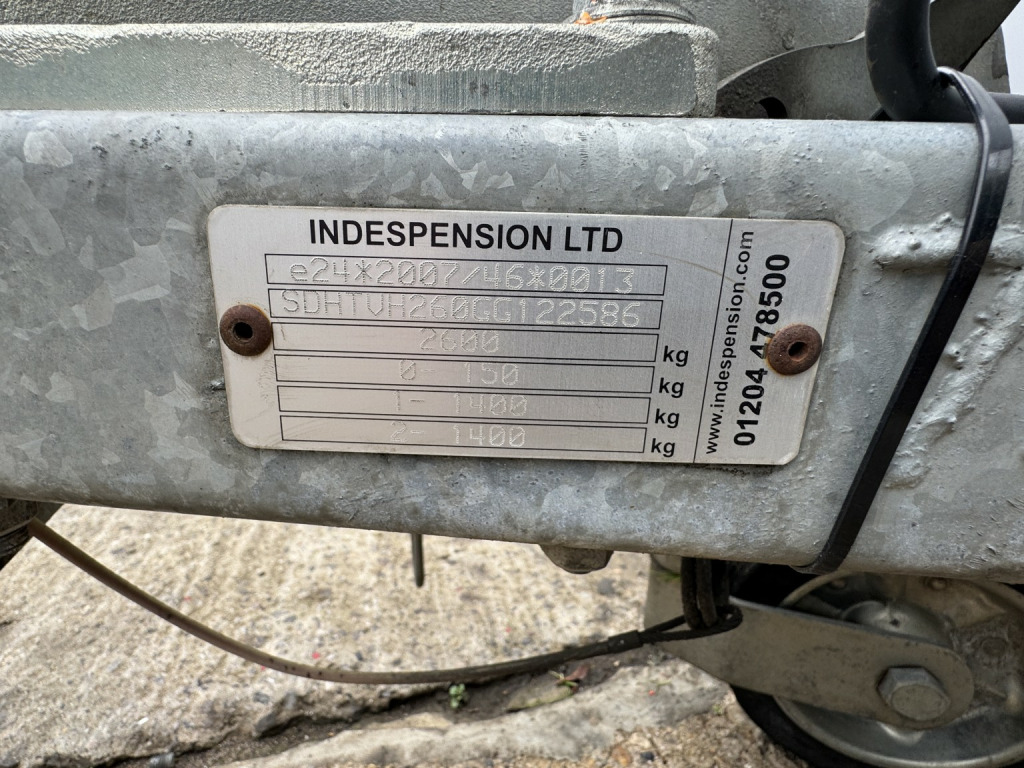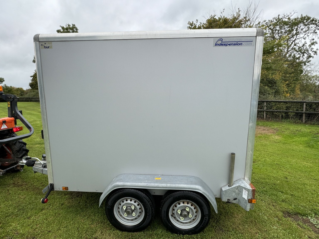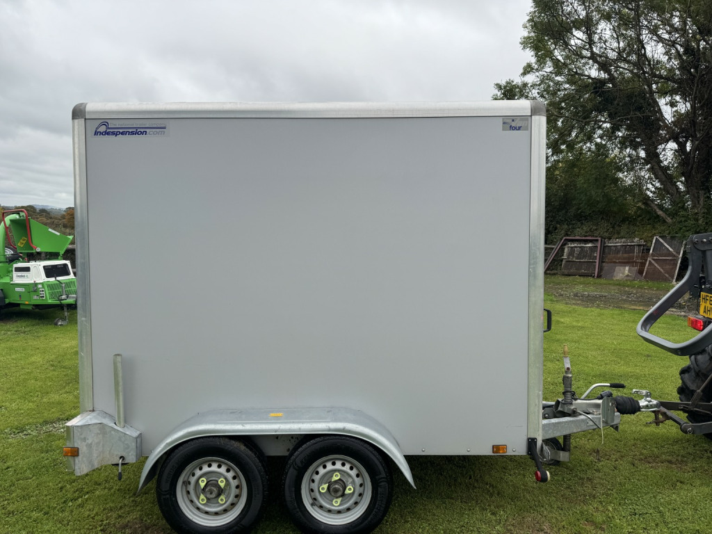 ** V.A.T to go on the Price **, Indespention Box Trailer,, Aluminium Trailer / Galvanised steel Chassis, TAV4 H =New Price £ 5,490 + V.A.T , , Date of Reg; 00 / 00 / 2016, 2,600 kg , Twin Rear Load Doors ,, New 50mm Ball Hitch Fitted,, Braked , Twin Prop Stands ,, Bowed Clear Roof Panel, , Twin Axle, Led Rear Lights ,, Double Skinned Aluminium Side Panels, , Aluminium Corner Extrusions,, Rear Side Markers , 13 Pin Electric Socket ,, 6 internal Lash Points ,, Aluminium Mud Guards , , Well Maintained & Last Serviced at 03/02/2025. , Inside Trailer Measurements ;, 4 ft 10 inch or 186 cm Wide, 8 ft 4 inch in Length. 6 ft in Height. , Gross Weight 2,600 kg, Unladen Weight 565 kg, Payload Weight 2,035 kg, , Call David on 07767 404900