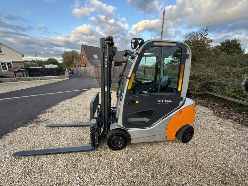 *The Price is Plus V.A.T**, Still Forklift RX 70-20 DIESEL, Low Hours ( Only 1,205 Hours ), One Owner From new,, Regularly Serviced, , With LOLER Certification,, Full Cab, 3,521 Kg,, Diesel Hybrid Technology,, More Eco-Friendly, , Front Load Backrest,, Electric Brakes,, Working Lights, , Counterbalanced,, Protective Grill Roof,, Reduced Emissions, , Heated Rear Screen,, Beacon & Bleeper Override,, Drivers Seat Belt, , Front & Rear Wash Wipe,, Rear View Mirror, , Sliding Glass Windows,, Adjustable Drivers Seat, , 2 Ton Lifting Capacity,, Sun Visor, x Keys,, Adjustable Hydraulic Fork Width,, Well Maintained & a Clean Example, Ready to go to work. , Call David on 07767 404900