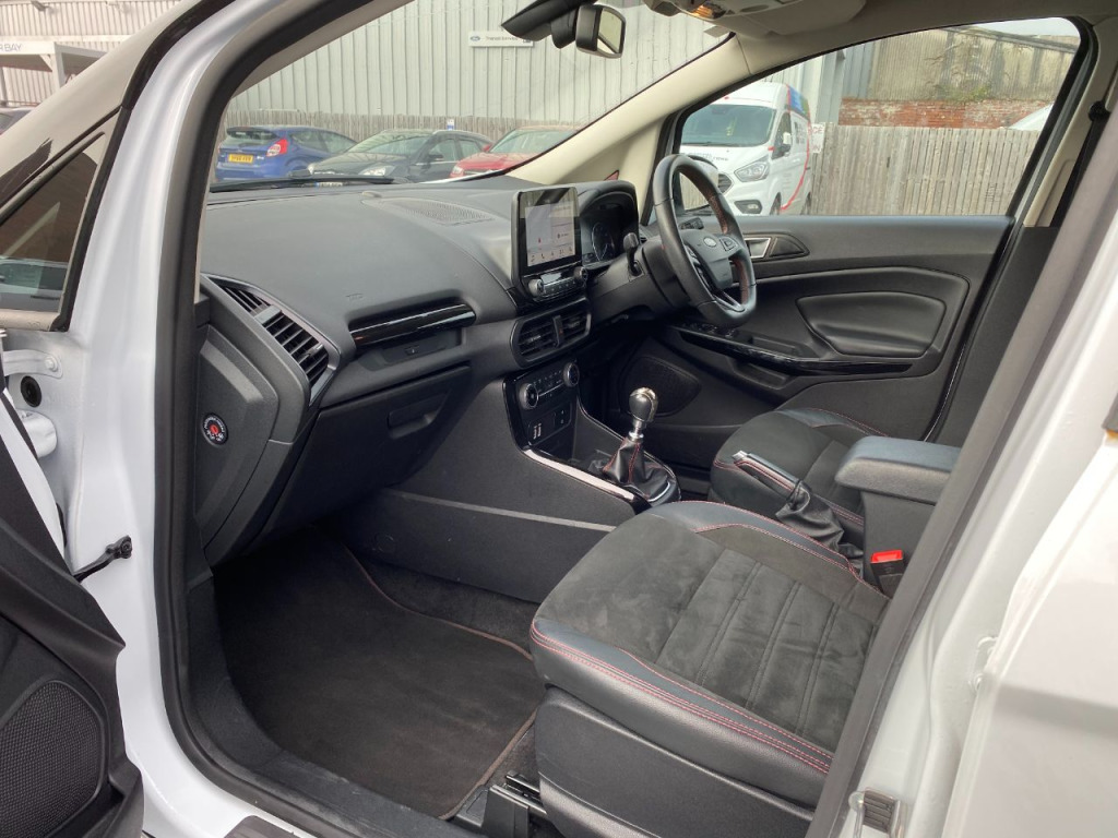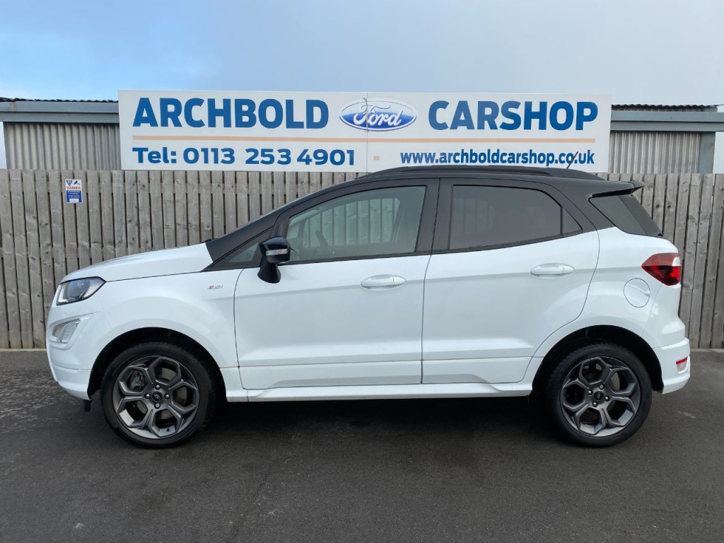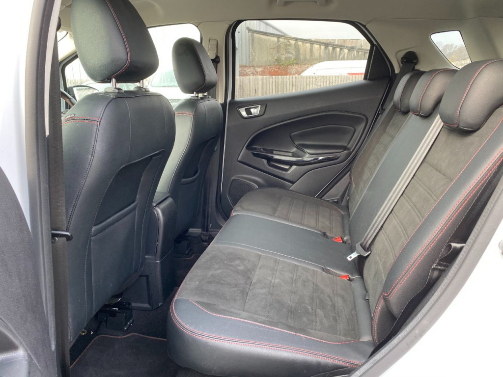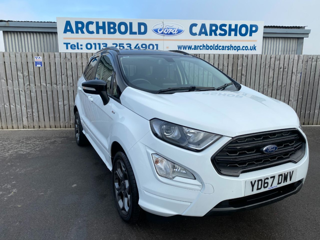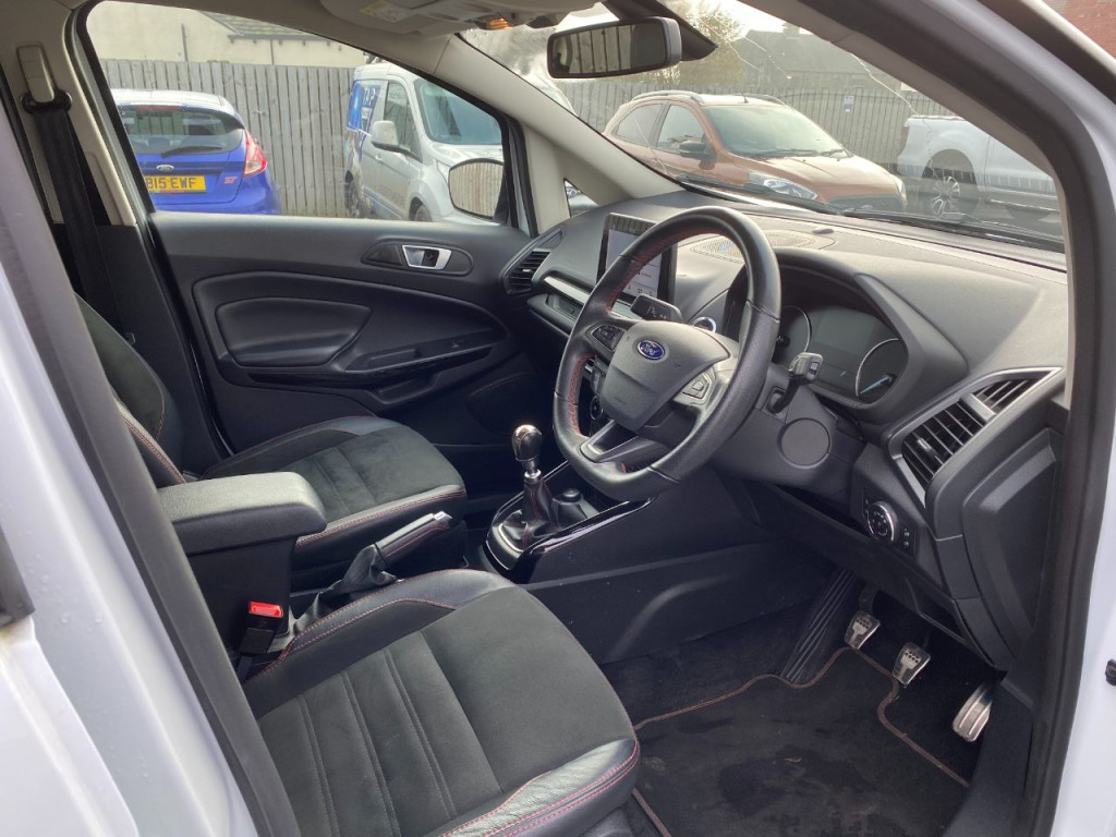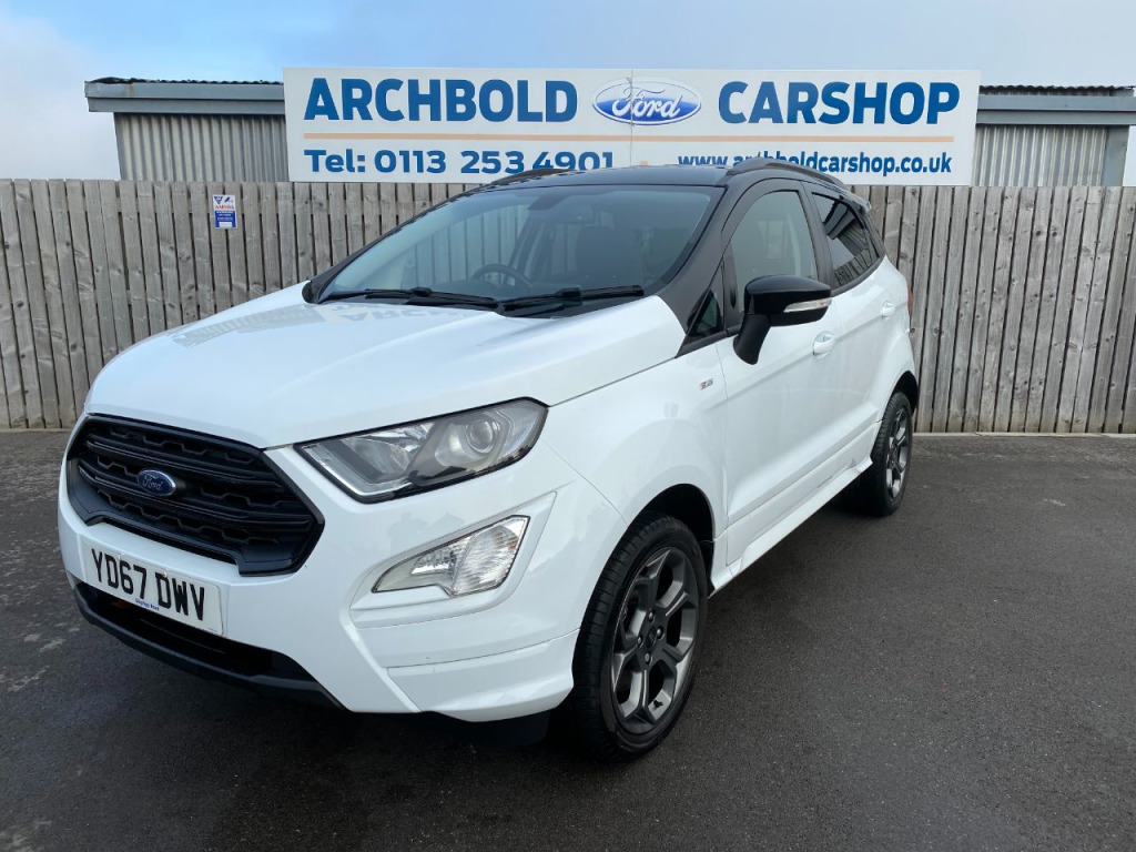FORD ECOSPORT 1.0 ECOBOOST 140PS ST-LINE IN FROZEN WHITE, FABULOUS CAR WITH GREAT LOOKS, EXCELLENT TO DRIVE WITH LOTS OF GREAT SPEC INCLUDING FULL COLOUR SAT NAV, REAR CAMERA, KEYLESS START, ELEC TRIC WINDOWS, DAB AUDIO PLUS LOTS MORE. ONE KEEPER FROM NEW WITH FULL SERVICE HISTORY, COMES SUPPLIED WITH 1 YEAR FORD WARRANTYDON'T MISS OUT CALL THE SALES TEAM NOW ON 0113 2534901